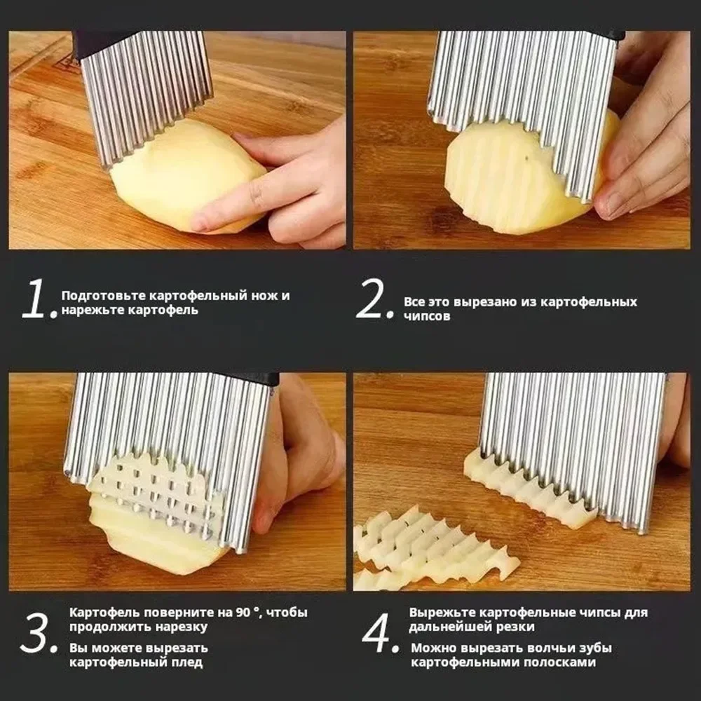 ที่หั่นมันฝรั่ง สแตนเลส ที่หั่นผักผลไม้ แบบหยัก ที่ทำเฟรนช์ฟรายส์ อุปกรณ์ครัว