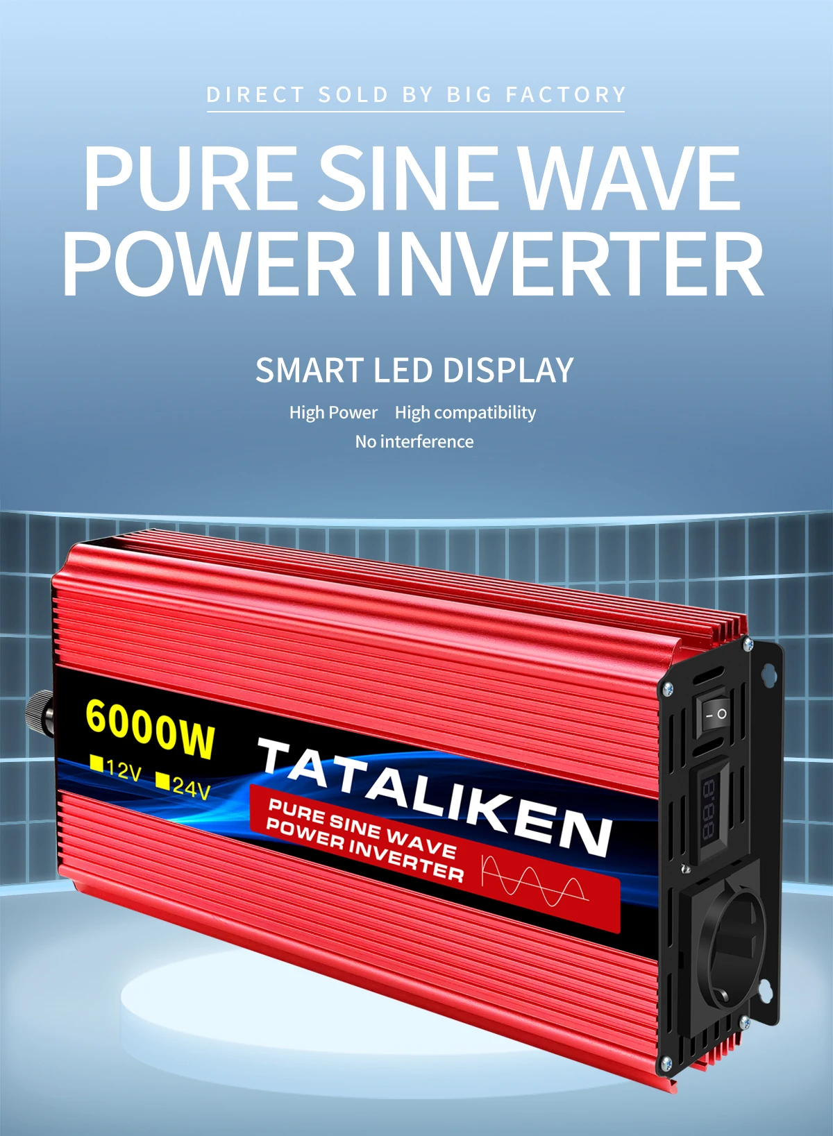อินเวอร์เตอร์คลื่นไซน์บริสุทธิ์แบบพกพา เครื่องแปลงไฟ 3000W-8000W DC 12V เป็น AC 220V สำหรับใช้ในรถยนต์ บ้าน และกลางแจ้ง ใช้กับพลังงานแสงอาทิตย์