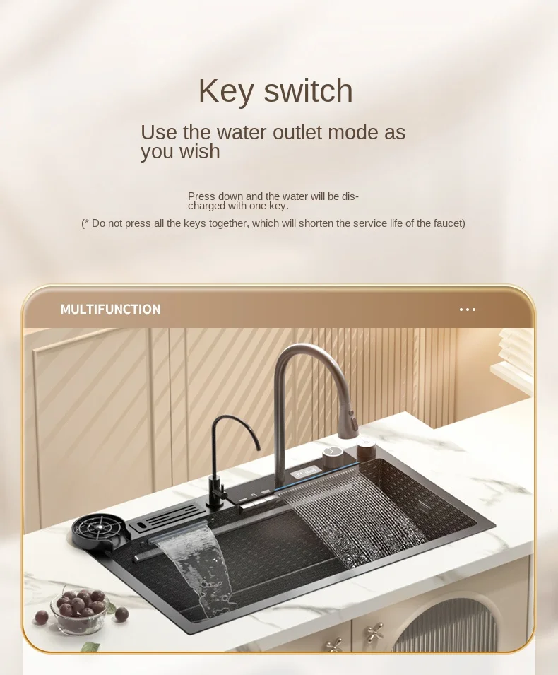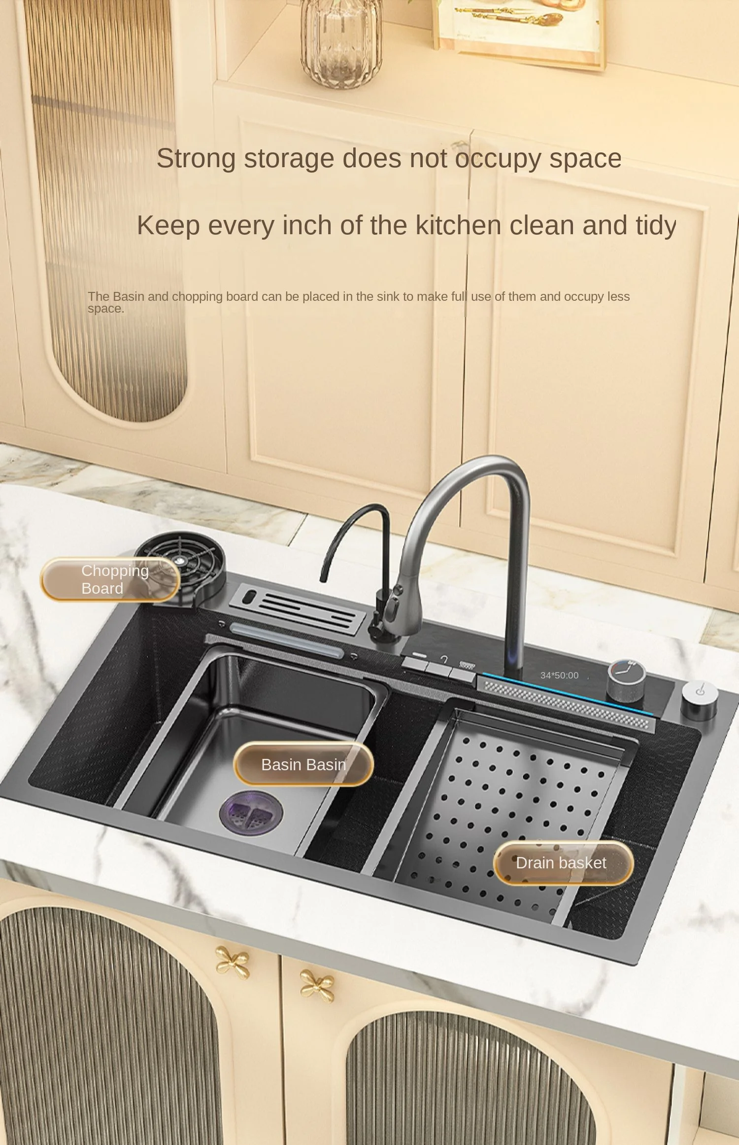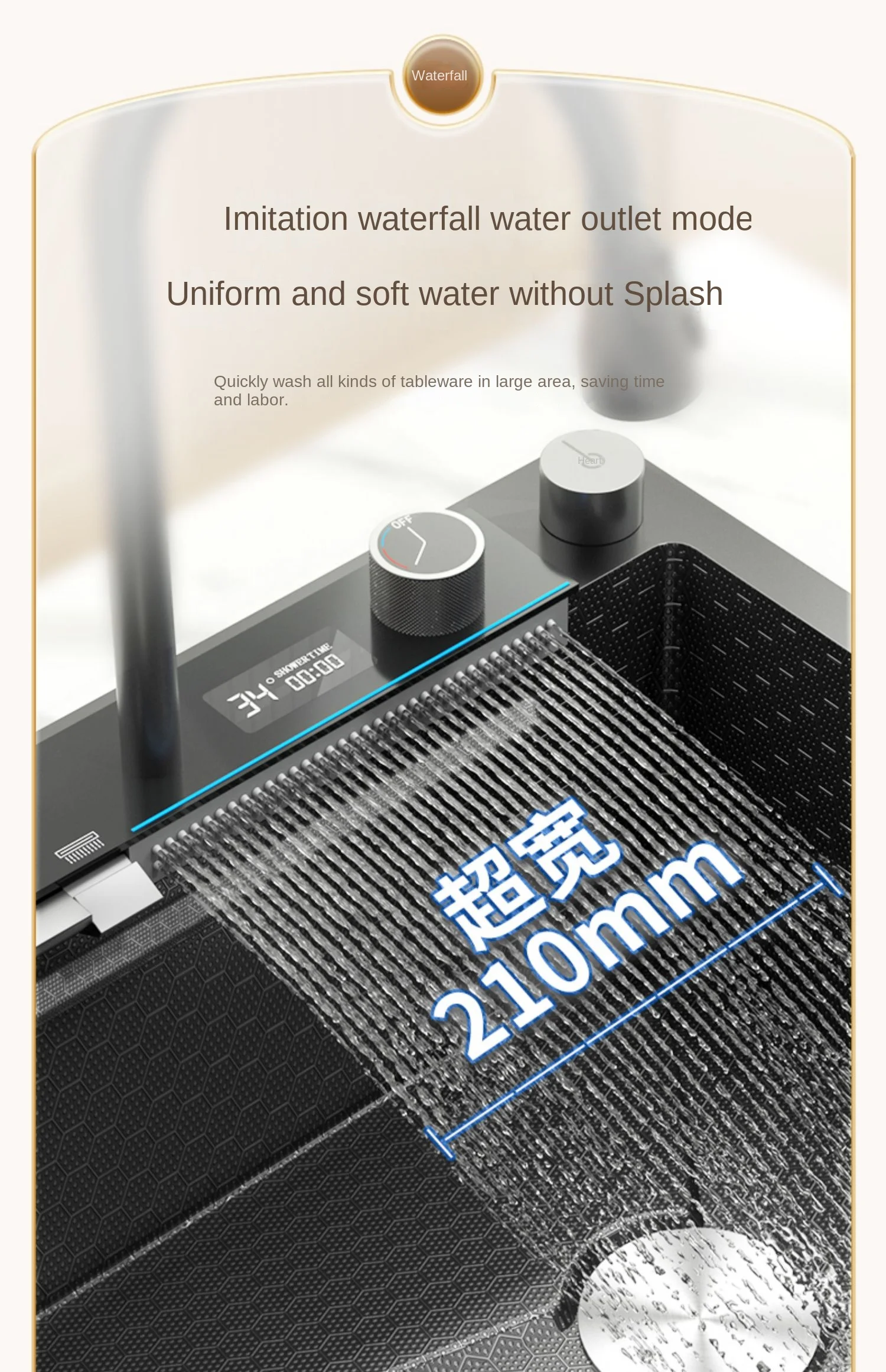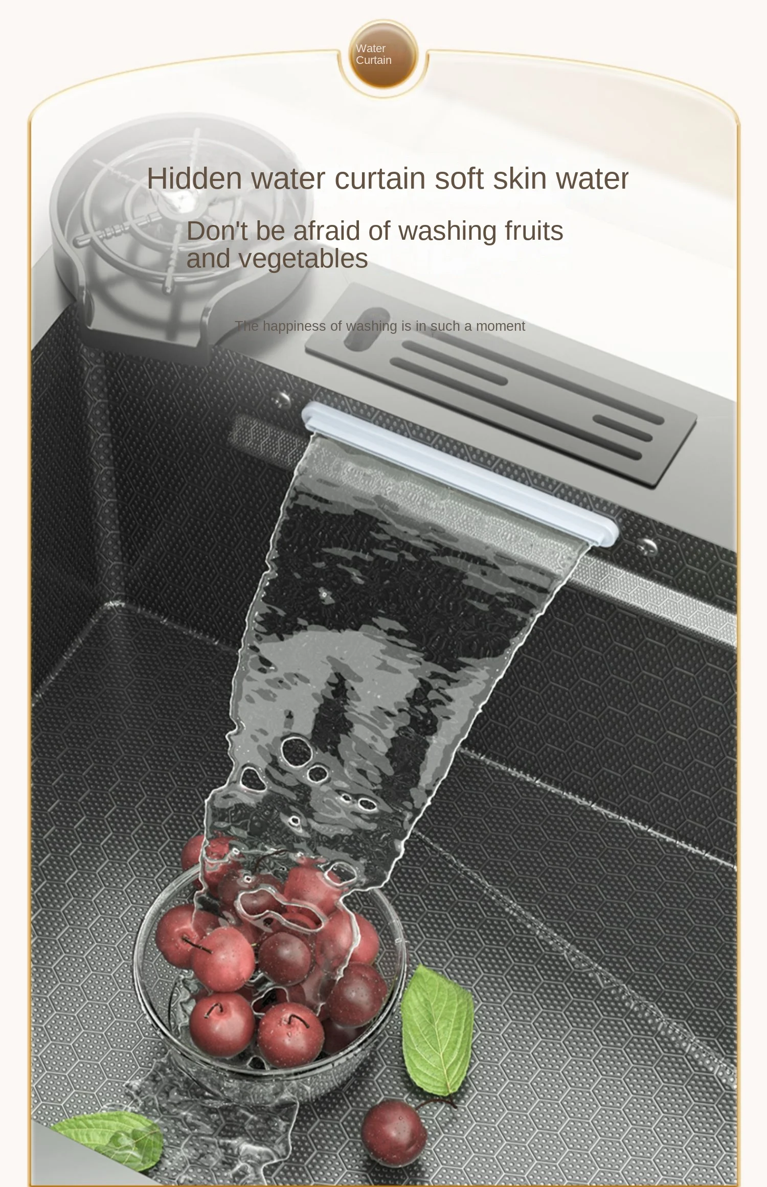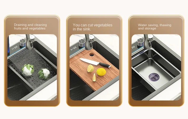 อ่างล้างจานแบบดิจิทัลลายนูน304นาโนสแตนเลสอ่างล้างหน้าเดี่ยวขนาดใหญ่อ่างล้างหน้าในห้องครัวอ่างล้างหน้าสีดำ