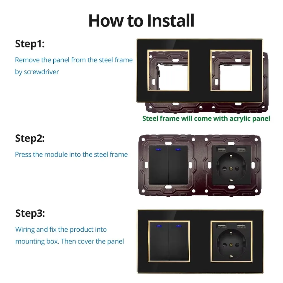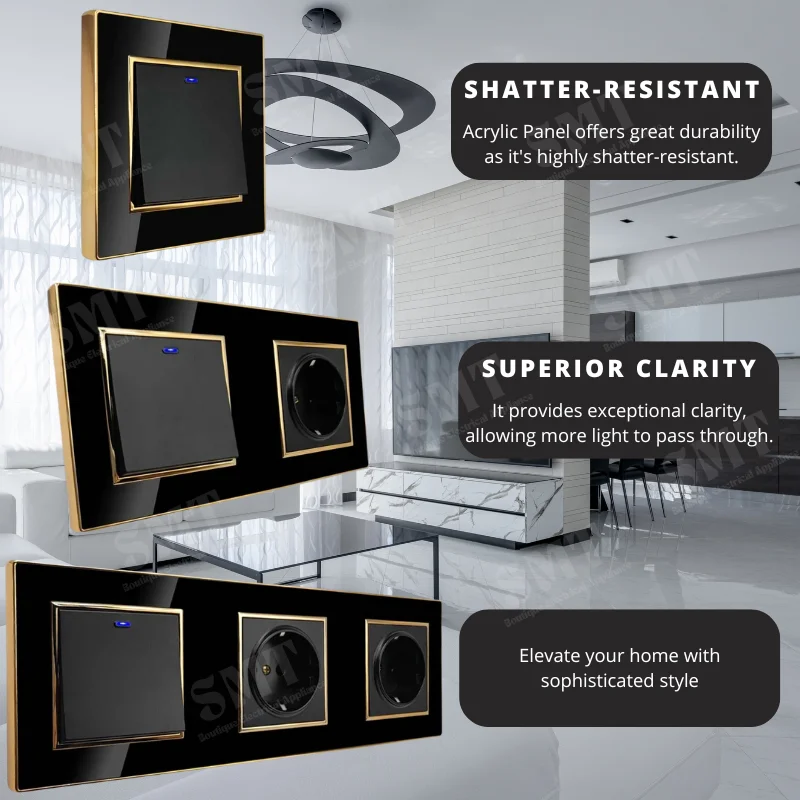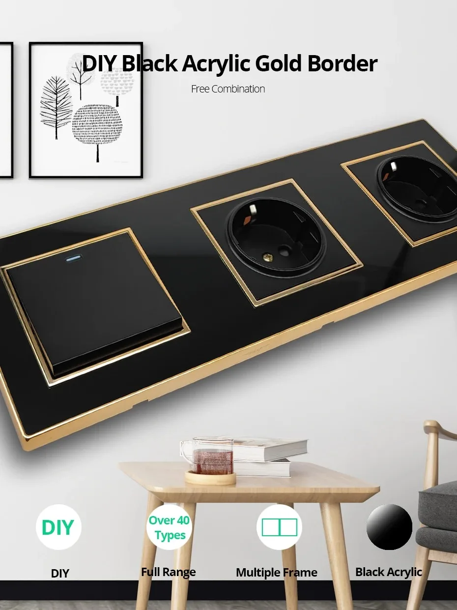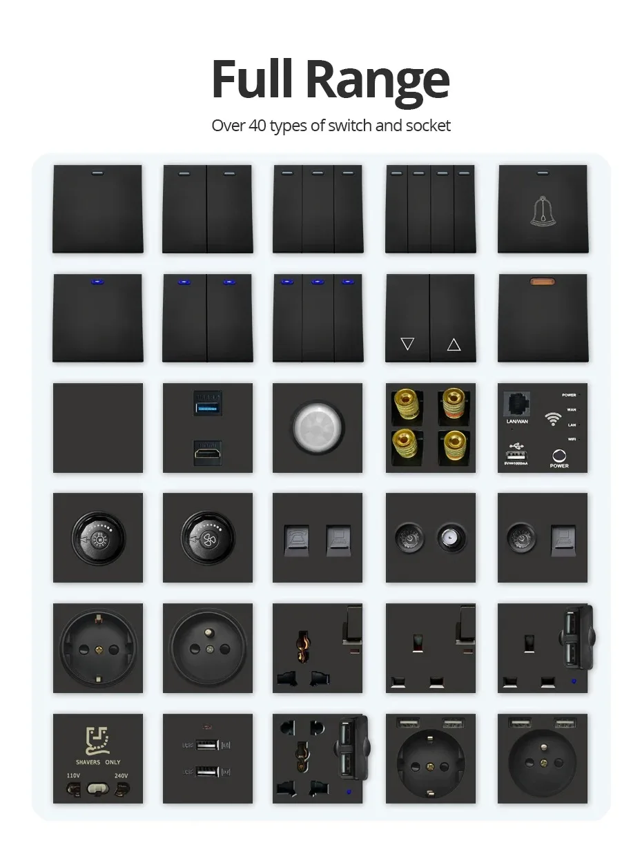 5 Gang Apartment Blocks Rocker Switch Villa โดยใช้สวิตช์ผนังข้างเตียงซ็อกเก็ตเค้าโครงแนวตั้งแผงโมดูลซ็อกเก็ต Glossy Black