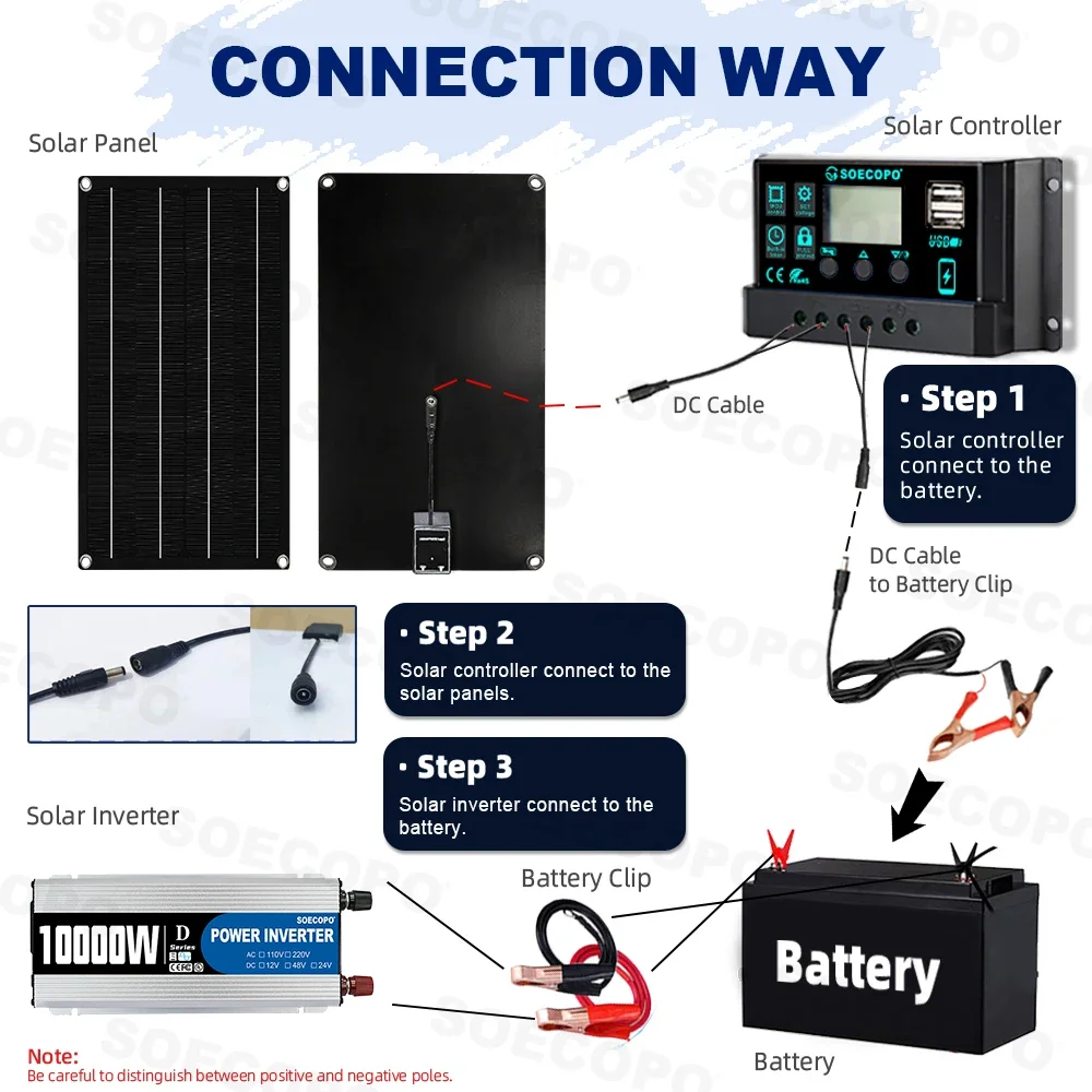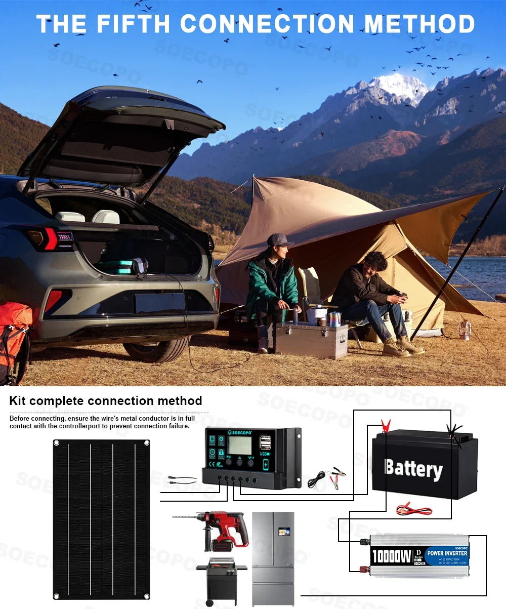 ชุดระบบพลังงานแสงอาทิตย์ SOECOPO 10000W พร้อมแผงโซลาร์เซลล์ 800W ตัวควบคุม 100A อินเวอร์เตอร์ 12V เป็น 220V 110V สำหรับตั้งแคมป์/รถบ้าน/บ้าน