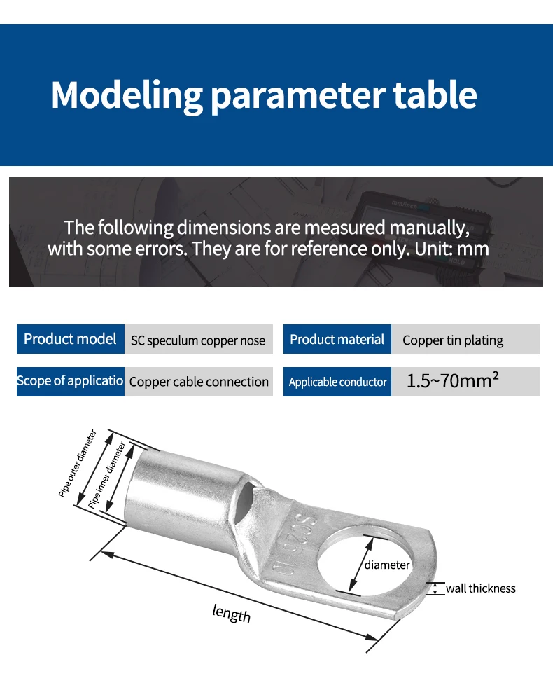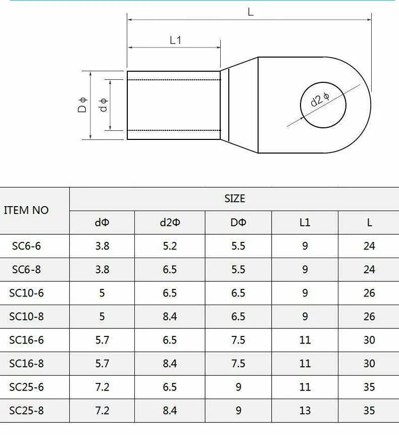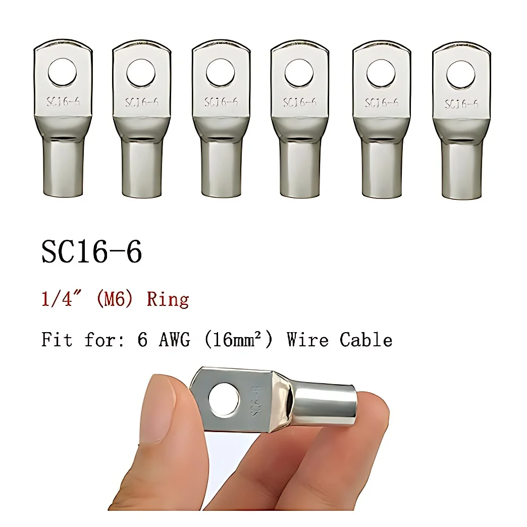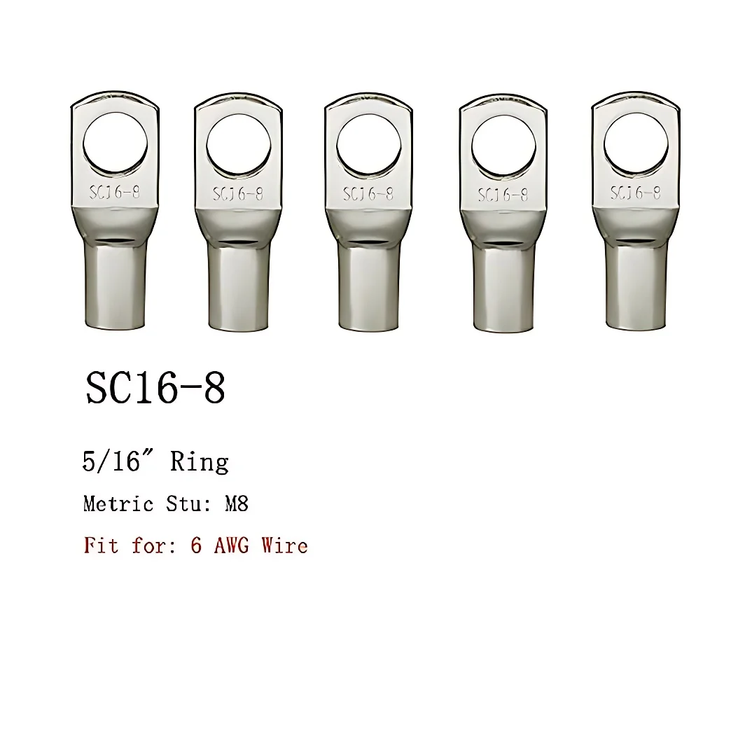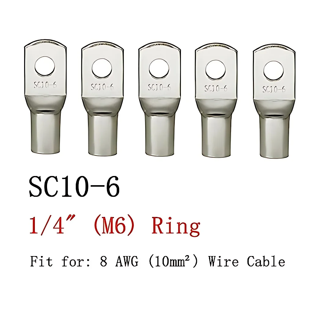 100ชิ้นทองแดงดึงแหวนลวดเชื่อมต่อสายเคเบิลไฟฟ้าจีบขั้วSC6-6 SC6-8 SC10-6 SC10-8 SC16-6 SC16-10 SC25-6 SC25-12