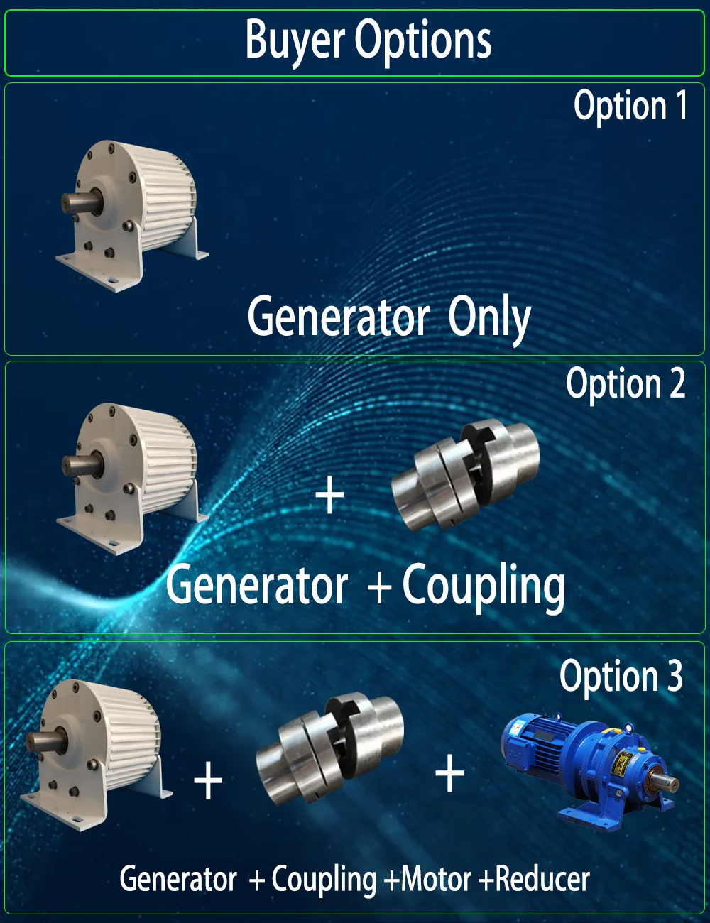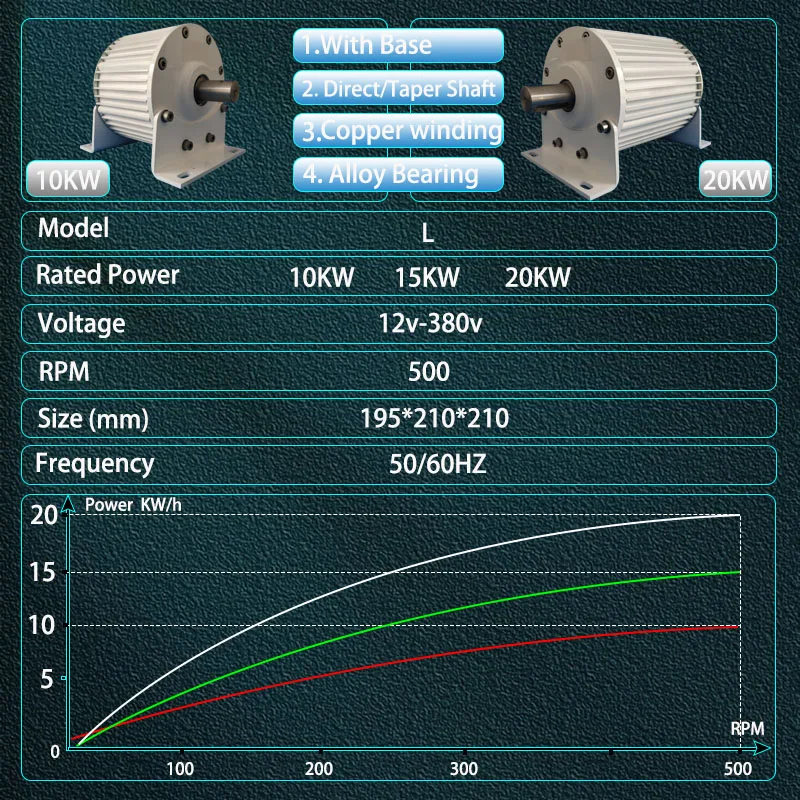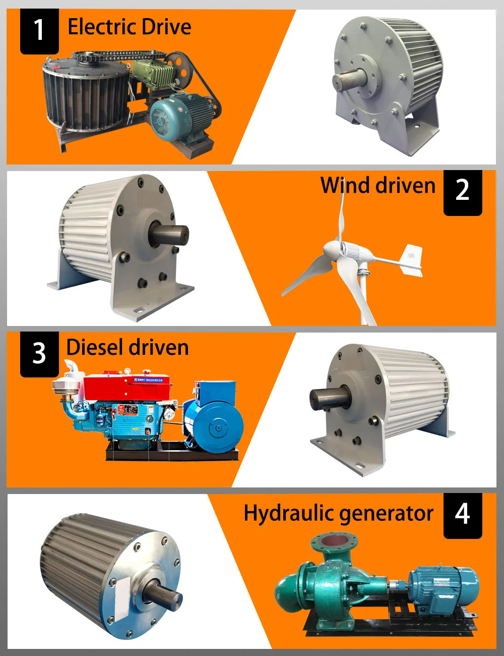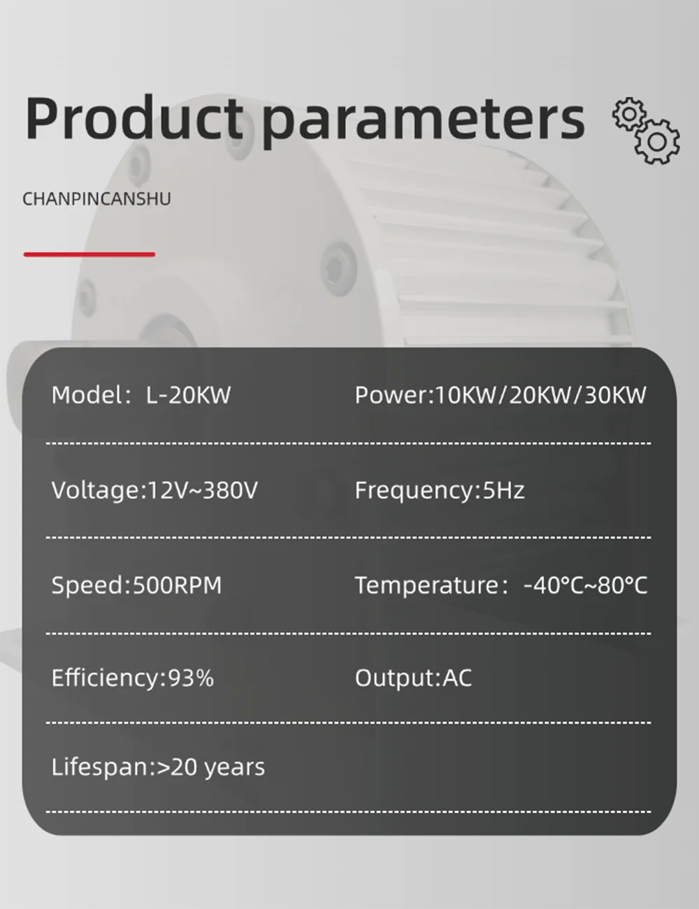 เครื่องกำเนิดไฟฟ้าแม่เหล็กถาวรความเร็วรอบต่ำ 10KW 20KW 30KW พลังงานอิสระ 110V 220V 380V พร้อมมอเตอร์ขับเคลื่อน