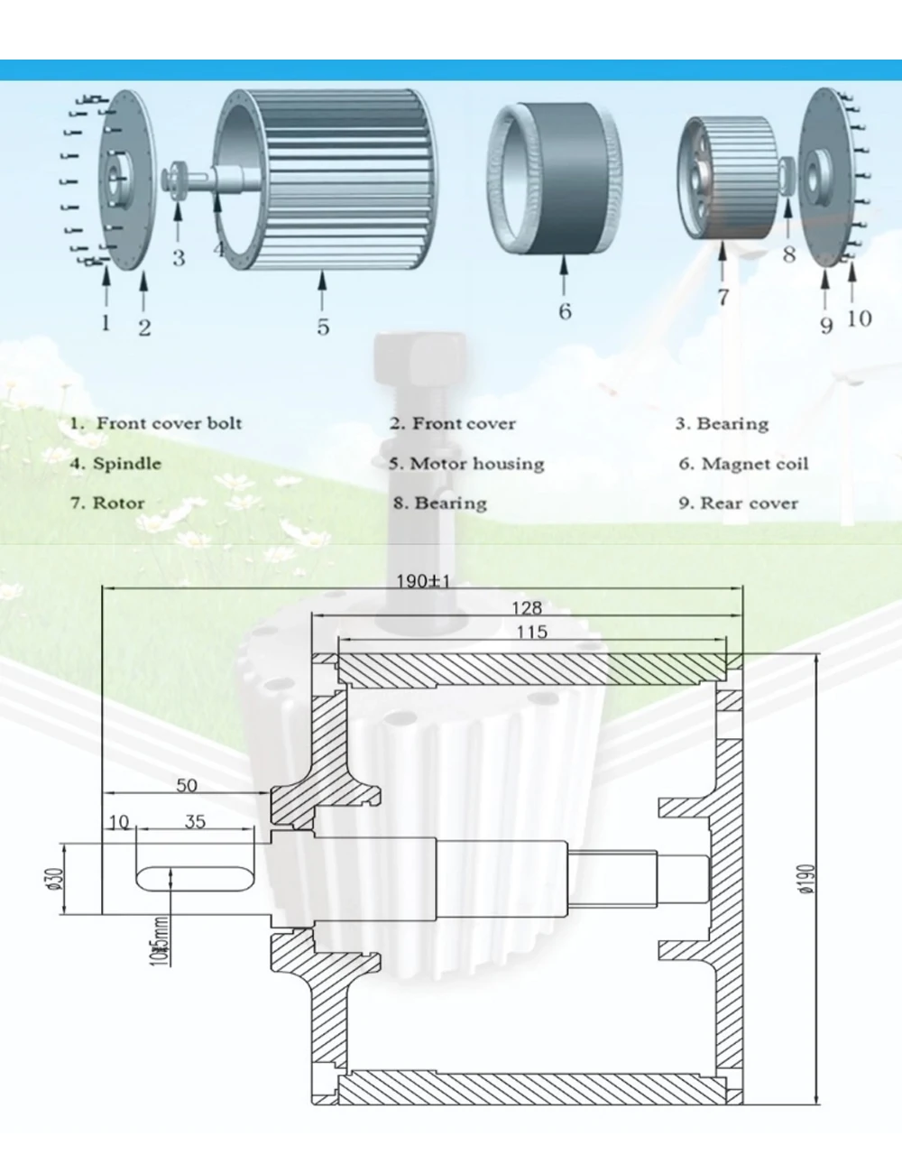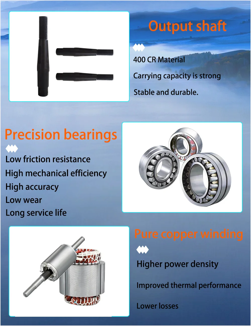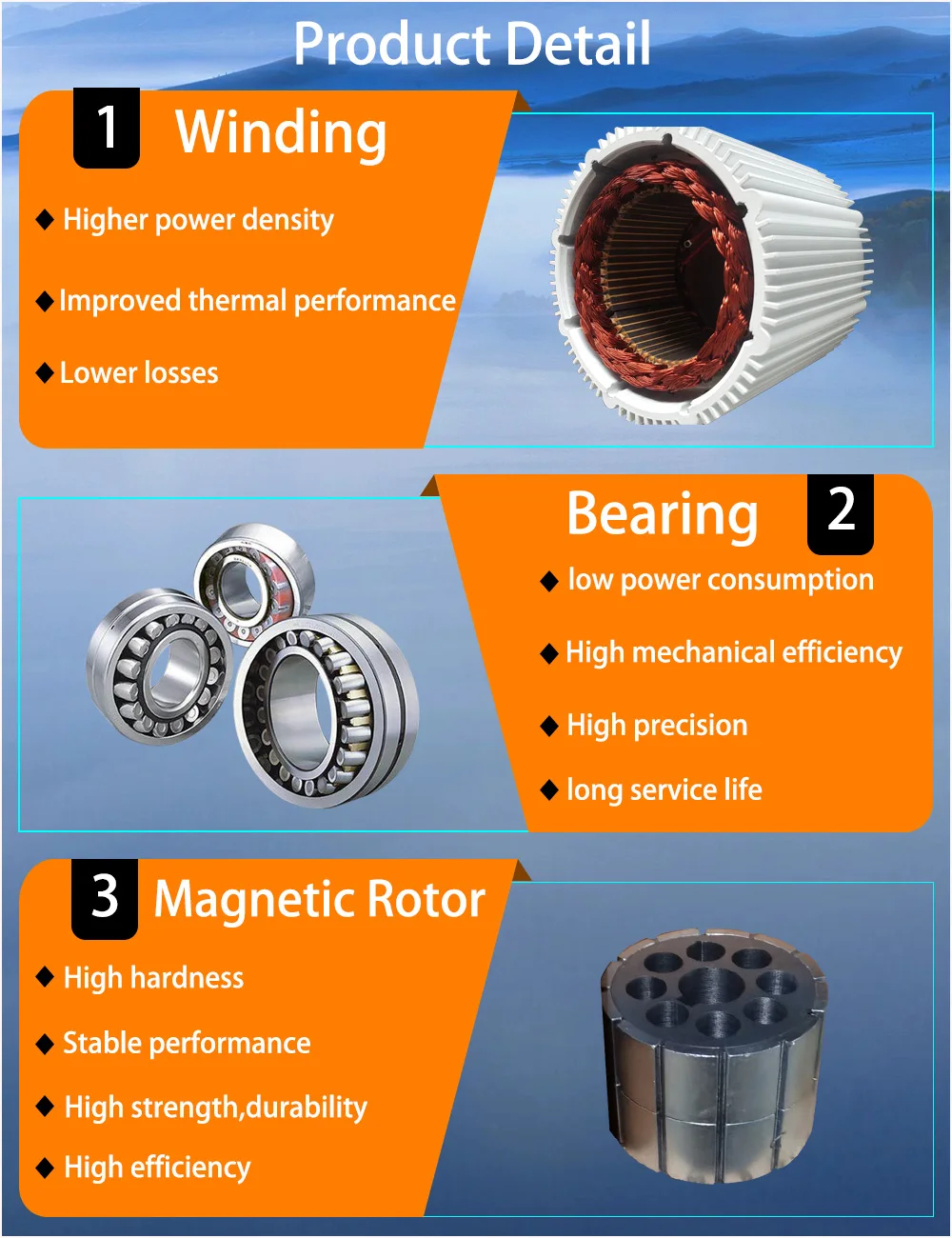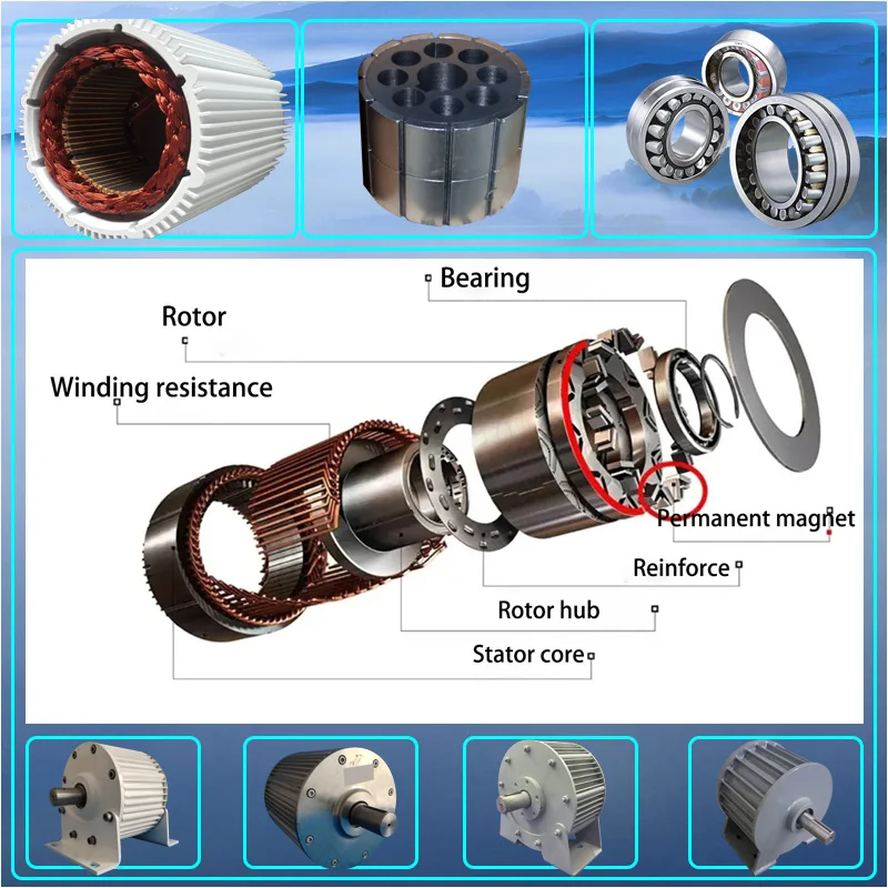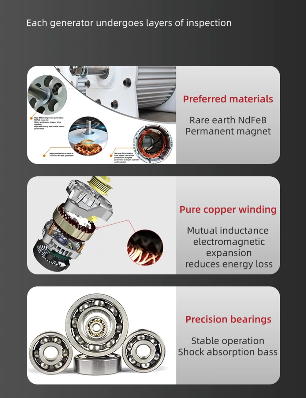 6. เครื่องกำเนิดไฟฟ้ากระแสสลับแม่เหล็กถาวรที่จดสิทธิบัตร พร้อมสเตเตอร์พิเศษ ช่วยลดแรงบิดได้อย่างมีประสิทธิภาพ เข้ากันได้ดีกับกังหันลมและเครื่องกำเนิดไฟฟ้า เพื่อให้มั่นใจถึงประสิทธิภาพของระบบทั้งหมด