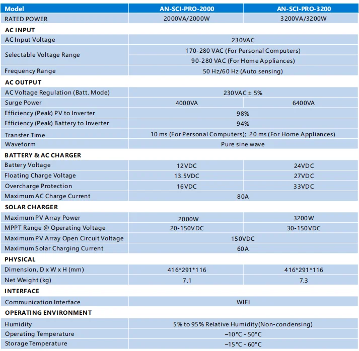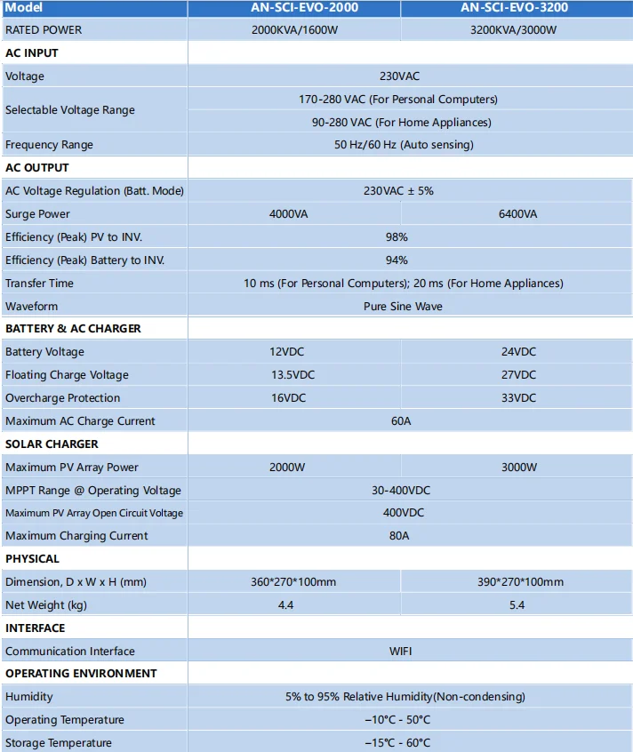 กำลังชาร์จพลังงานแสงอาทิตย์สูงสุด 2000W (สำหรับ 2000KVA) และ 3000W (สำหรับ 3200KVA)