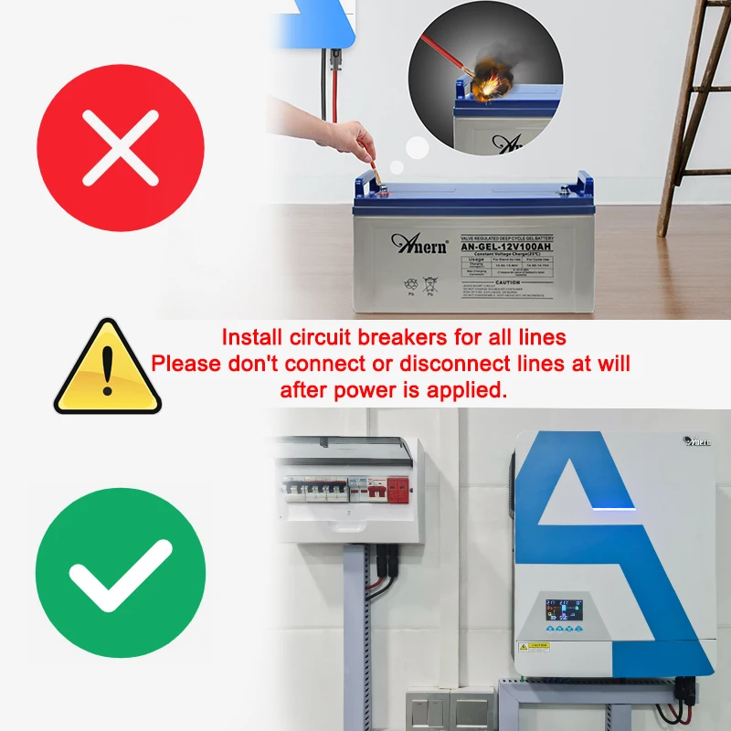 3.ลำดับการเริ่มต้น: ขั้นแรกให้เปิดสวิตช์แบตเตอรี่ จากนั้นเริ่มอินเวอร์เตอร์ และเปิดสวิตช์ PV, ไฟหลัก และสวิตช์โหลด