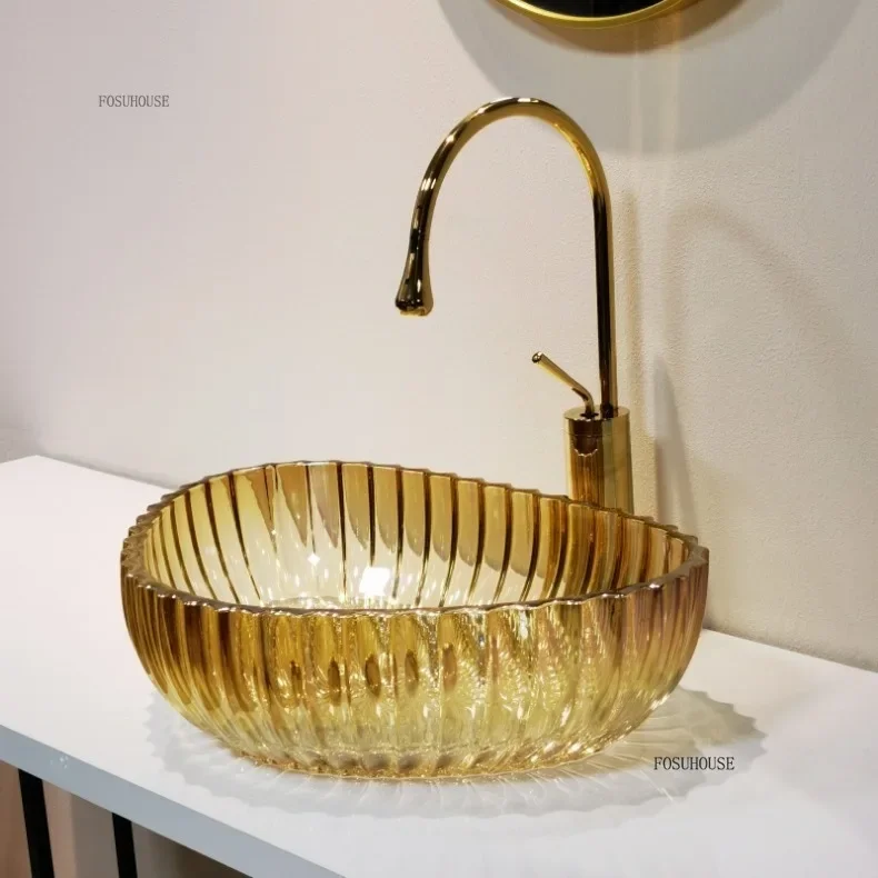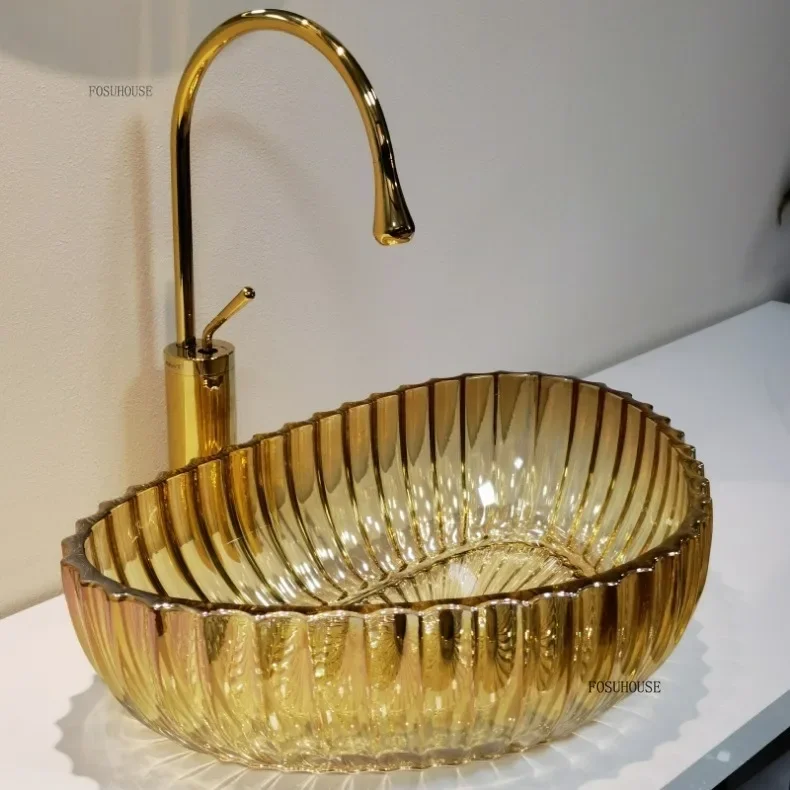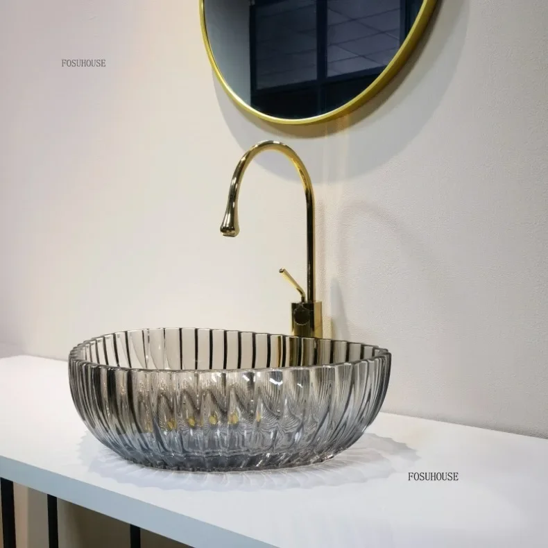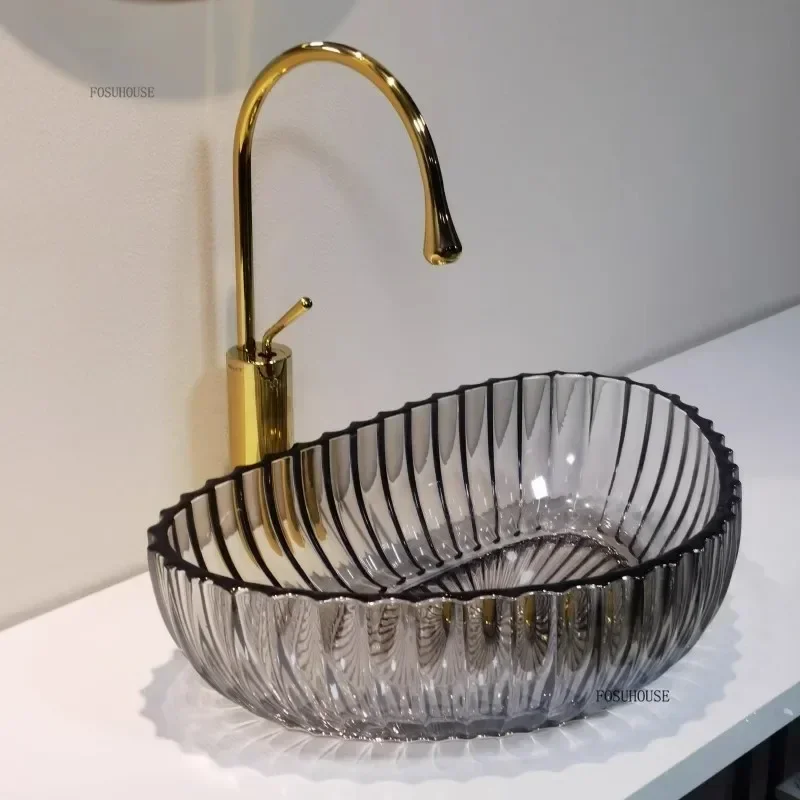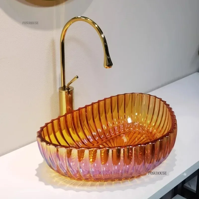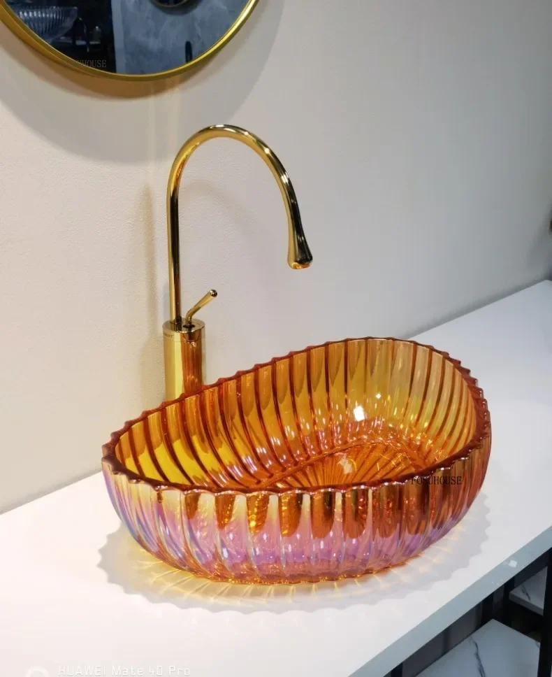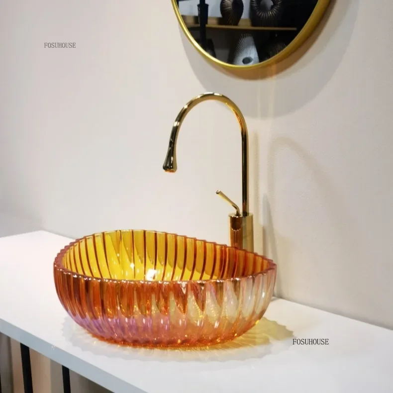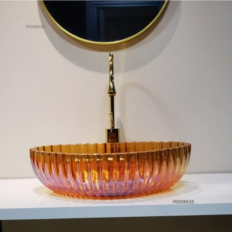Nordic อ่างล้างหน้าที่มีสีสัน Designer โปร่งใสเรซิ่นห้องน้ําอ่างล้างหน้ารอบอ่างล้างจานตกแต่งห้องน้ําอ่างล้างหน้ามือ