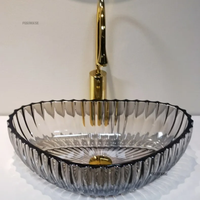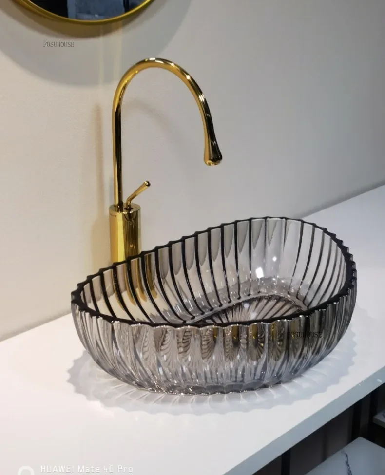 อ่างล้างหน้าแบบใสสำหรับห้องน้ำและห้องครัว ดีไซน์ทันสมัย วางบนเคาน์เตอร์ หรูหราพิเศษ สำหรับโรงแรม