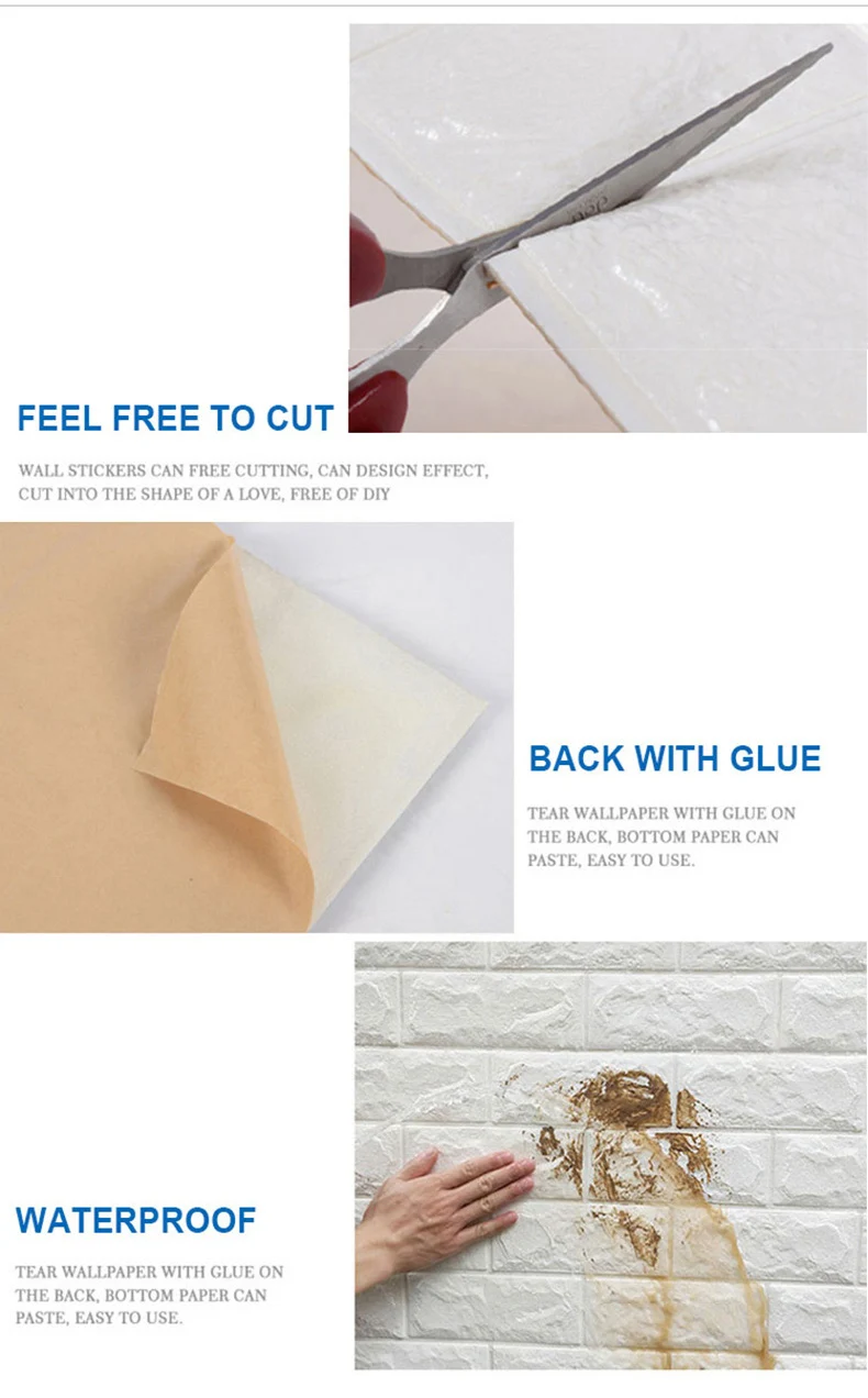 วอลล์เปเปอร์อิฐ3D-XPE เป็นมิตรกับสิ่งแวดล้อมปกป้องชีวิตของคุณ กันน้ำและติดง่ายที่บ้าน