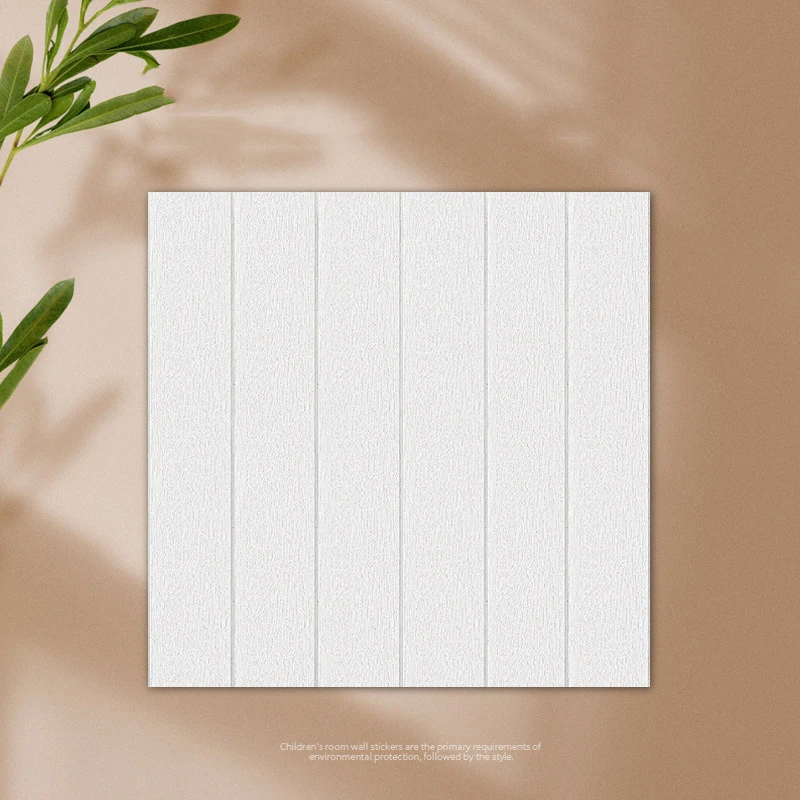 สติกเกอร์ไม้ติดผนัง3D แผ่นติดผนังมีกาวในตัววอลล์เปเปอร์กันน้ำกันเชื้อรา Busa lembaran ตกแต่งผนังสีขาว