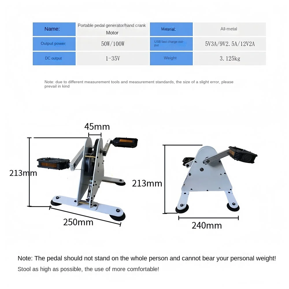 เครื่องกําเนิดไฟฟ้าแบบเหยียบแบบพกพา เครื่องกําเนิดไฟฟ้าแบบมือหมุน เครื่องฝึกฟื้นฟูสมรรถภาพสามารถชาร์จขณะออกกําลังกาย 50w/100w