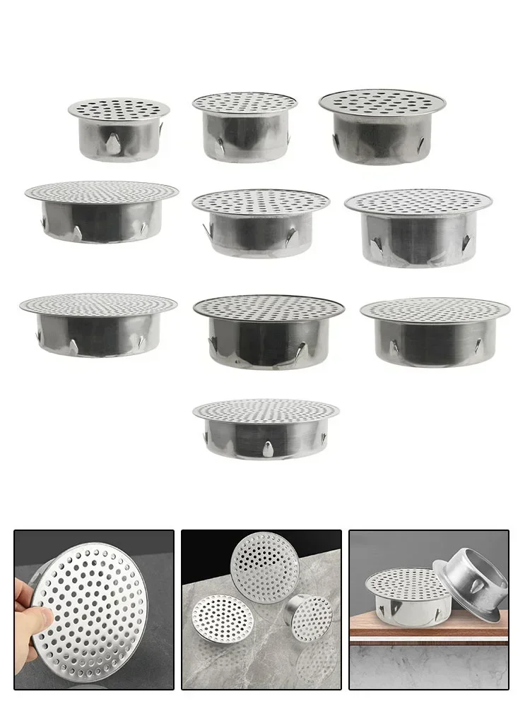 ท่อระบายน้ำสแตนเลส1ชิ้น50-200มม. ท่อฝนแบบกลมหมวกป้องกันการบล็อกชั้นกรองสำหรับห้องน้ำระเบียงหลังคาระบายน้ำ