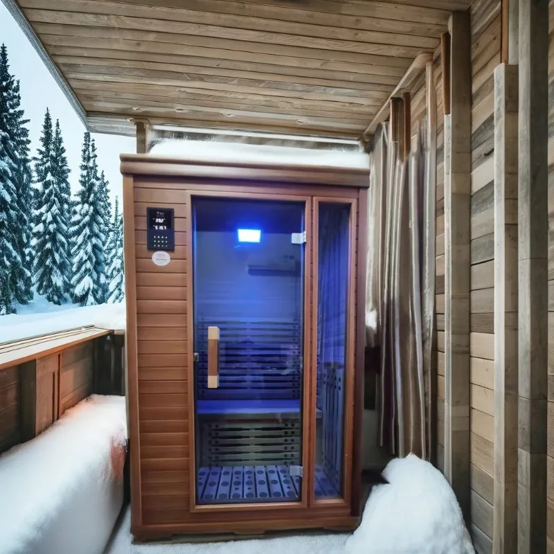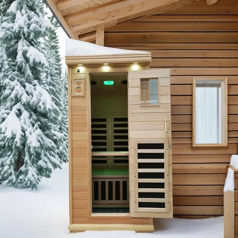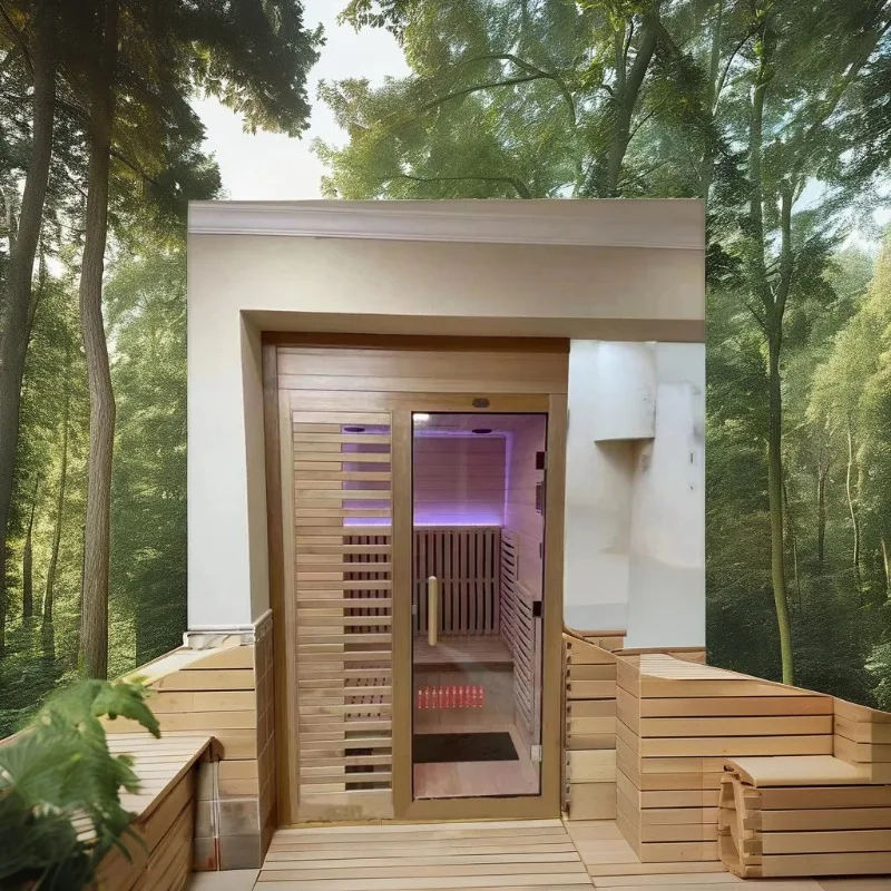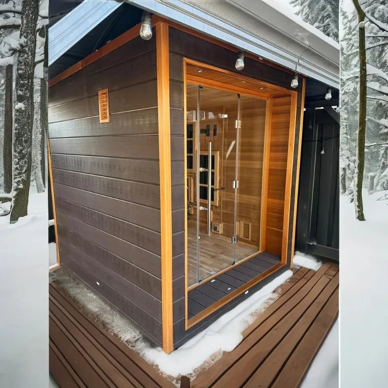 ห้องซาวน่าอินฟราเรดแบบดั้งเดิมสำหรับ 4 คน ยี่ห้อ DUTRIEUX สำหรับใช้งานกลางแจ้ง พร้อมห้องอบไอน้ำ