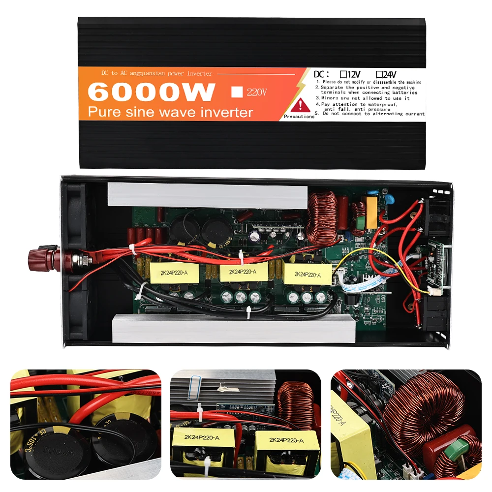 Pure Sine Wave อินเวอร์เตอร์24V 220V 6000W Power Inverter DC To AC หม้อแปลงแรงดันไฟฟ้า12V/36V/48V/72V/96V/110ถึง120V/230V/240V