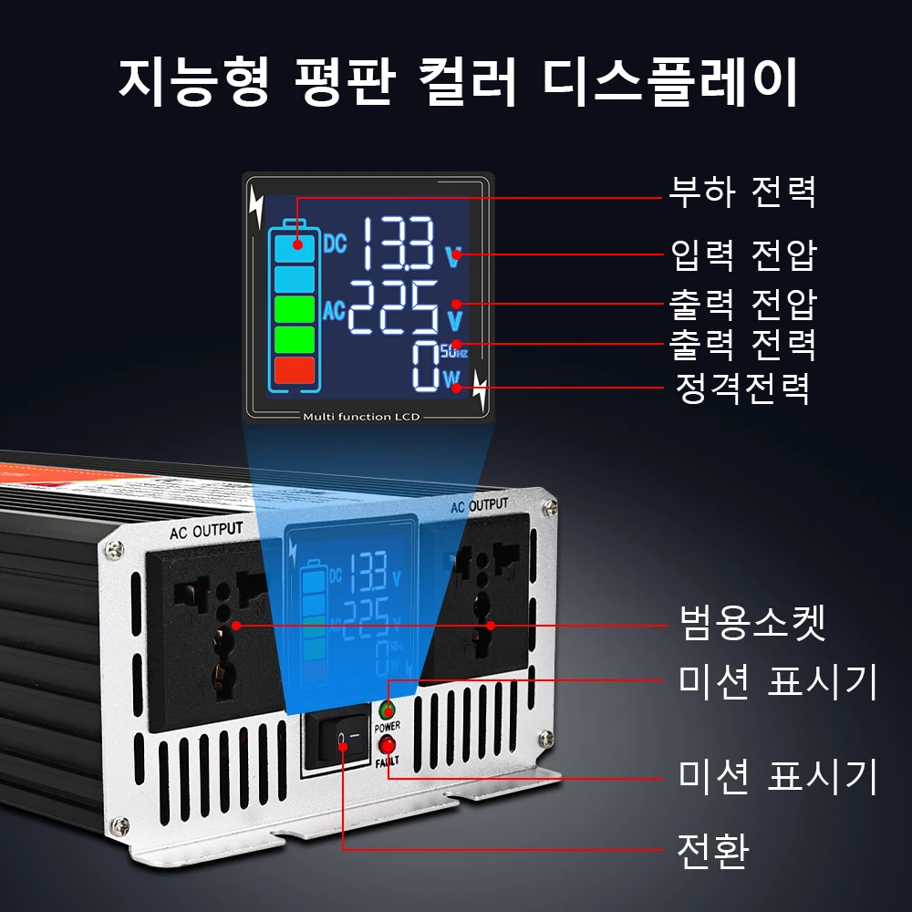 การตรวจสอบแบบเรียลไทม์: หน้าจอ LCD สีจะตรวจสอบแรงดันไฟฟ้าอินพุต แรงดันเอาต์พุต พลังงานแบตเตอรี่ กําลังเอาต์พุต และความถี่เอาต์พุตแบบเรียลไทม์