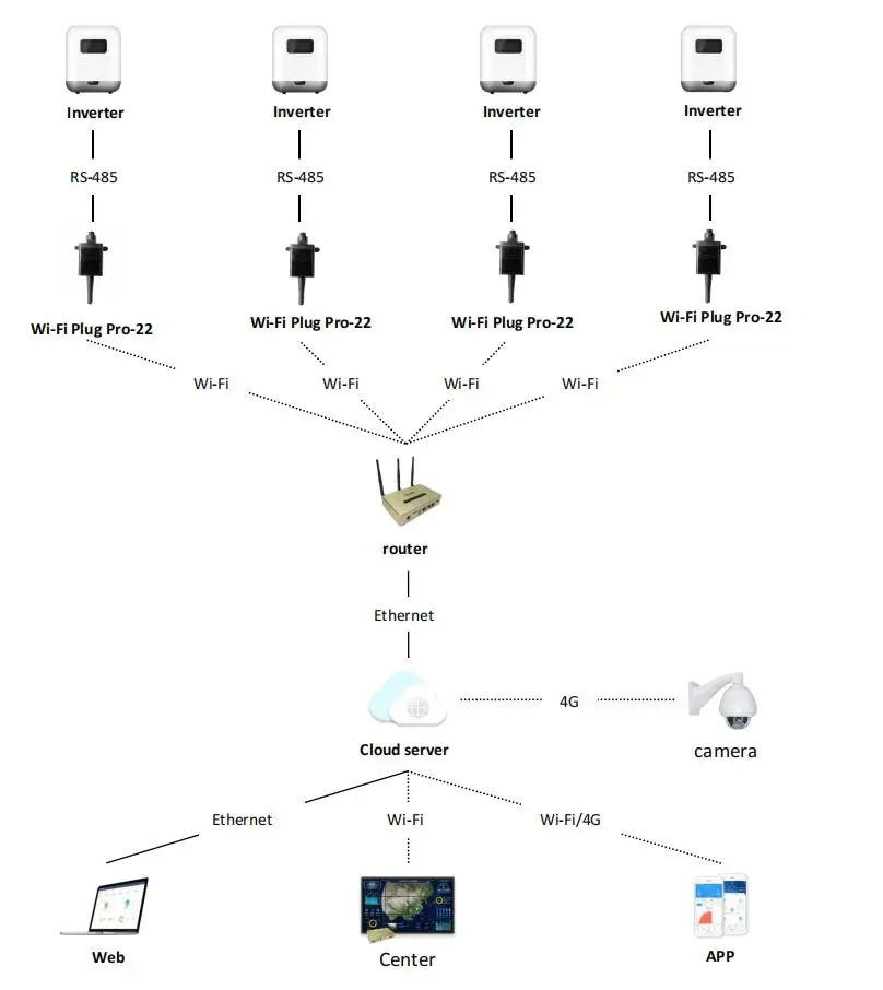 หมายเหตุ: โมดูล Wifi สามารถใช้ได้กับอินเวอร์เตอร์ไฮบริด GTMT/SRNE MPPT เท่านั้น (ซีรี่ส์ HF/ASP/ASF)