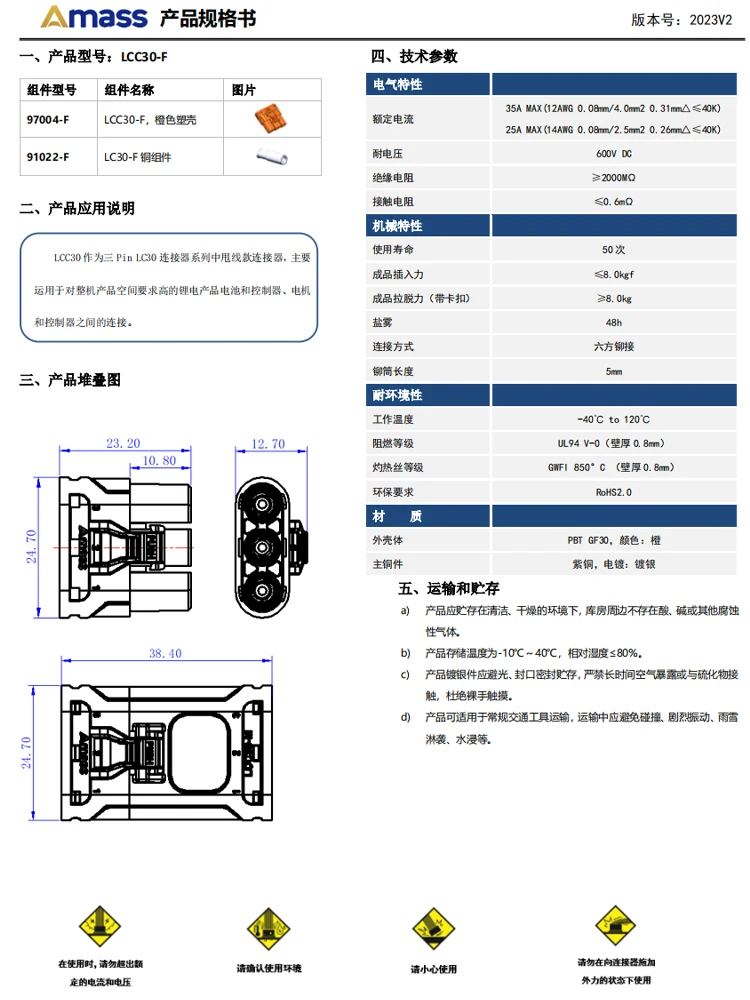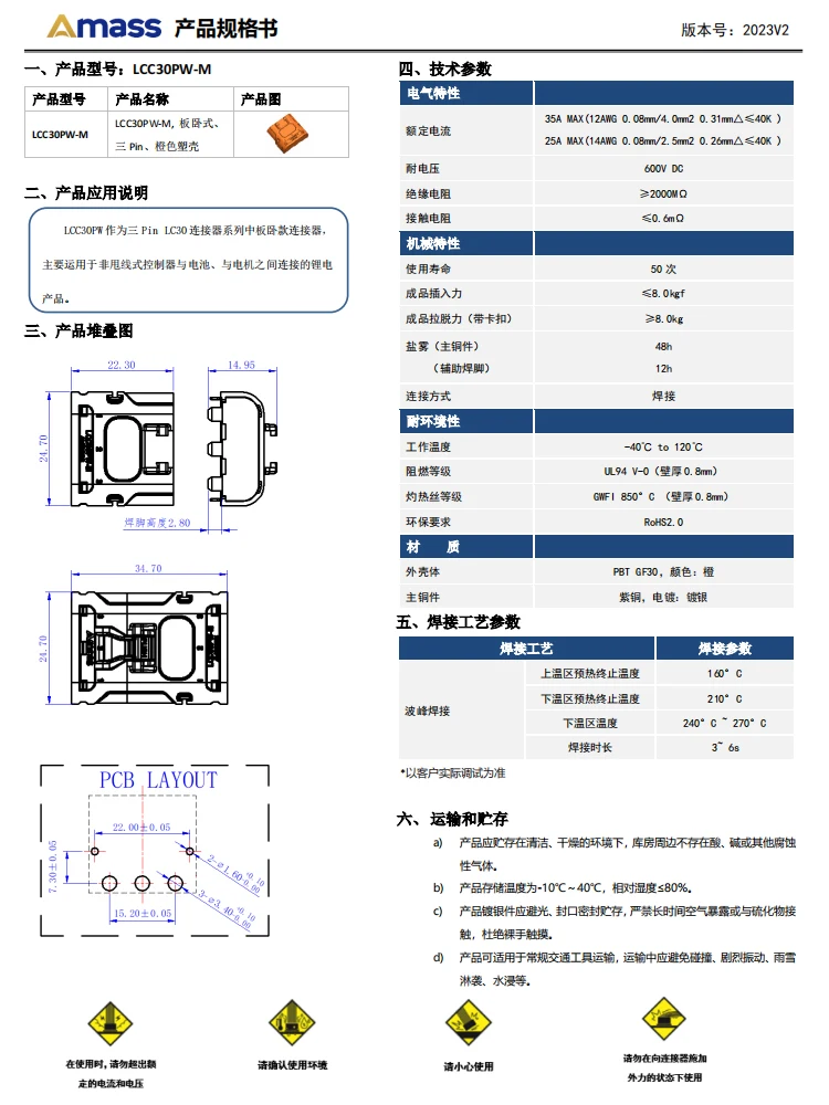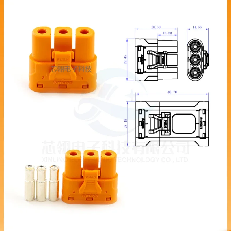 ขั้วต่อแบบกดเย็นแนวนอน 3 แกน รุ่น Amass LCC30PW-M สำหรับกระแสไฟสูง