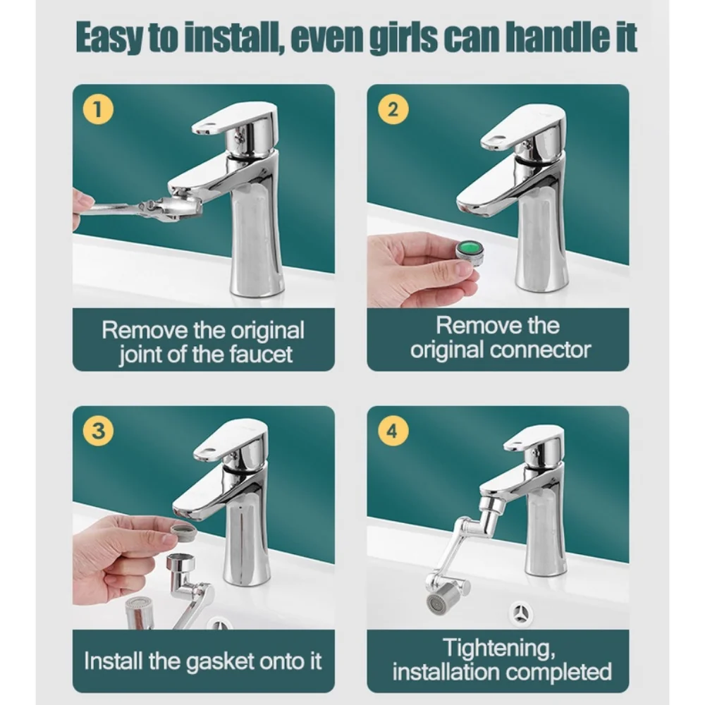 【ติดตั้งง่าย】สิ่งที่แนบมากับเครื่องพ่นก๊อกน้ําอ่างล้างจานนั้นติดตั้งและบํารุงรักษาง่าย และเป็นตัวเลือกระยะยาวที่ยอดเยี่ยมสําหรับการกรองน้ําเพียงคลายเกลียวเครื่องเติมอากาศออกจากปลายเกลียวของ faucet แล้วแทนที่ด้วย faucet แบบหมุนได้ 1080 นี้กรุณาวัดเส้นผ่านศูนย์กลางก๊อกน้ําก่อนซื้อ