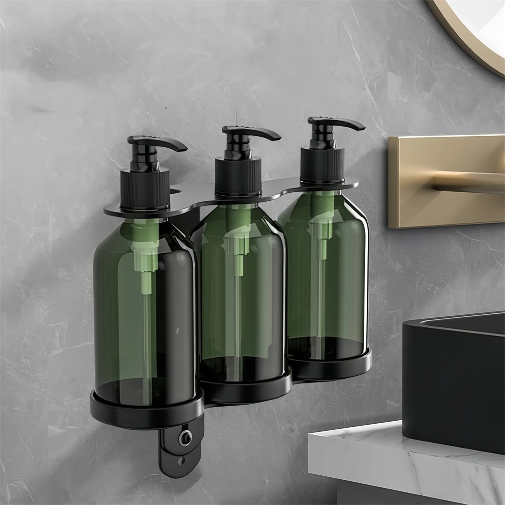 อ่างอาบน้ำสแตนเลสแบบไม่เจาะรูติดผนังสำหรับเครื่องจ่ายสบู่เหลวโรงแรมแชมพูและบอดี้ซักล้างขวดแยกต่างหากห้องน้ำห้องครัว