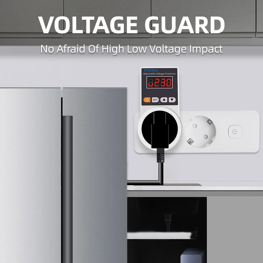 แรงดันไฟฟ้าอัตโนมัติ Protector ซ็อกเก็ต AC 220V 16A Power Surge Protector EU ปลั๊กแรงดันไฟฟ้าปลอดภัยตู้เย็นป้องกัน