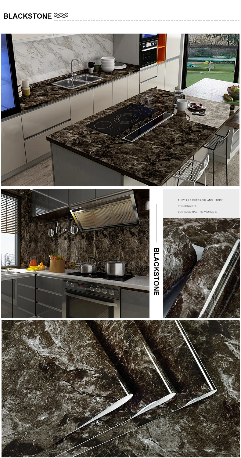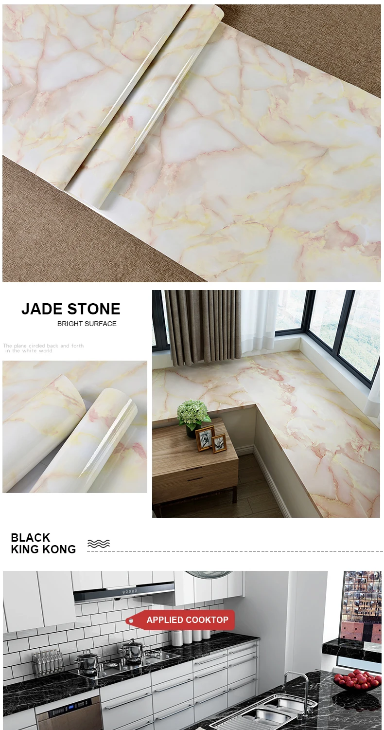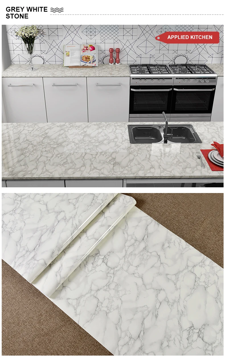 สติกเกอร์หินอ่อนห้องครัวฟิล์มกันน้ํามันเตากันน้ําความชื้น Self-Adhesive วอลล์เปเปอร์เคาน์เตอร์ตู้ Renovation กระเบื้อง