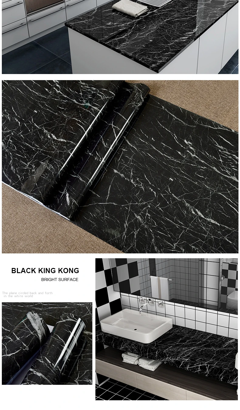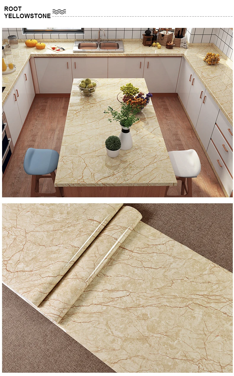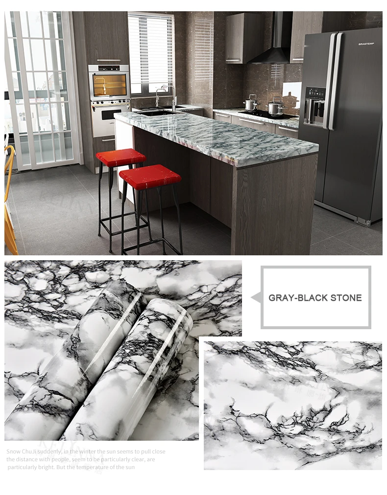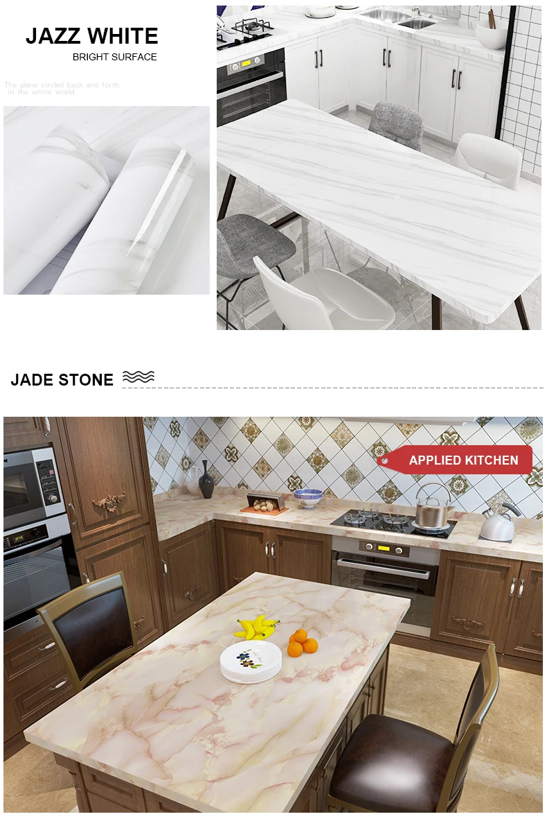 สติกเกอร์หินอ่อนห้องครัวฟิล์มกันน้ํามันเตากันน้ําความชื้น Self-Adhesive วอลล์เปเปอร์เคาน์เตอร์ตู้ Renovation กระเบื้อง
