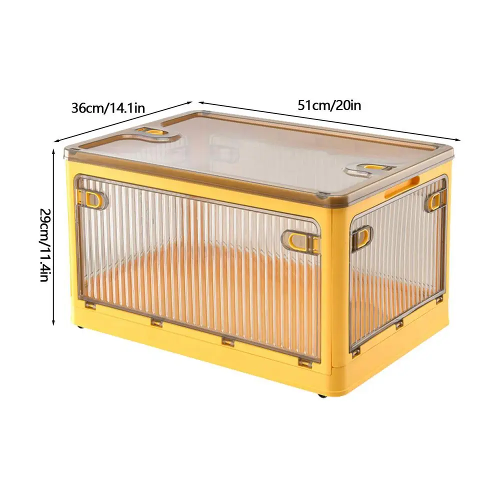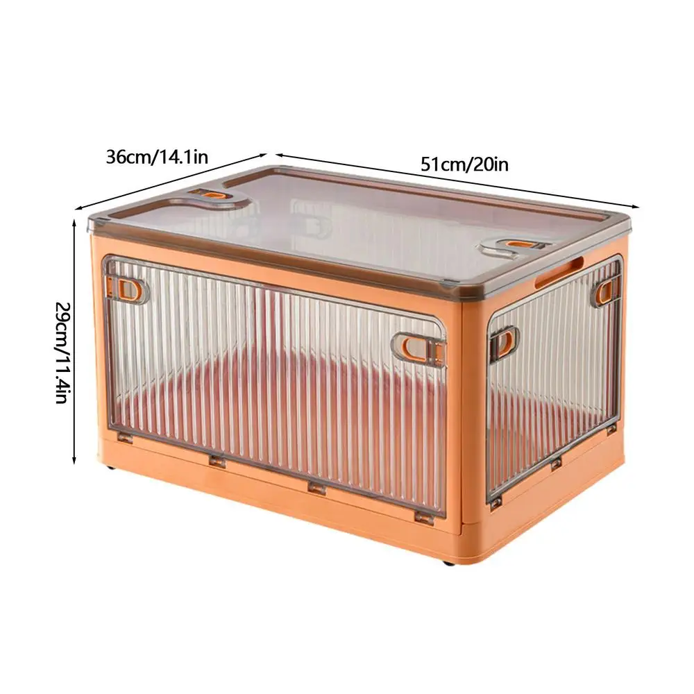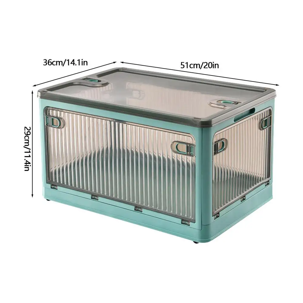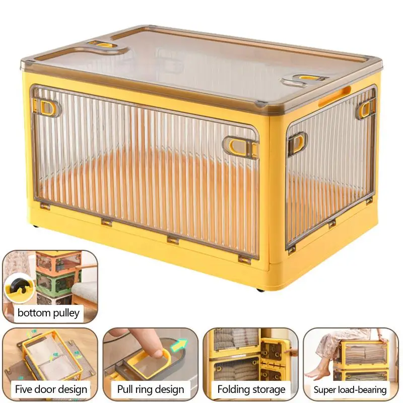 กล่องเก็บของพับได้พร้อมประตูโปร่งใสพร้อมฝาปิดและล้อที่เก็บของเล่นอเนกประสงค์กล่องใส่ของแบบใส