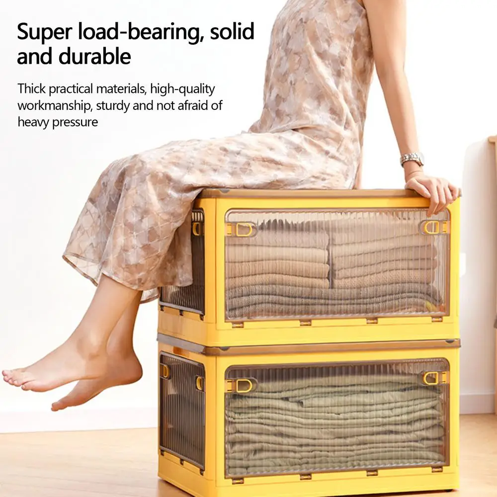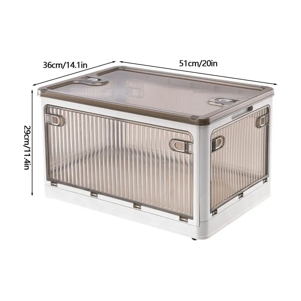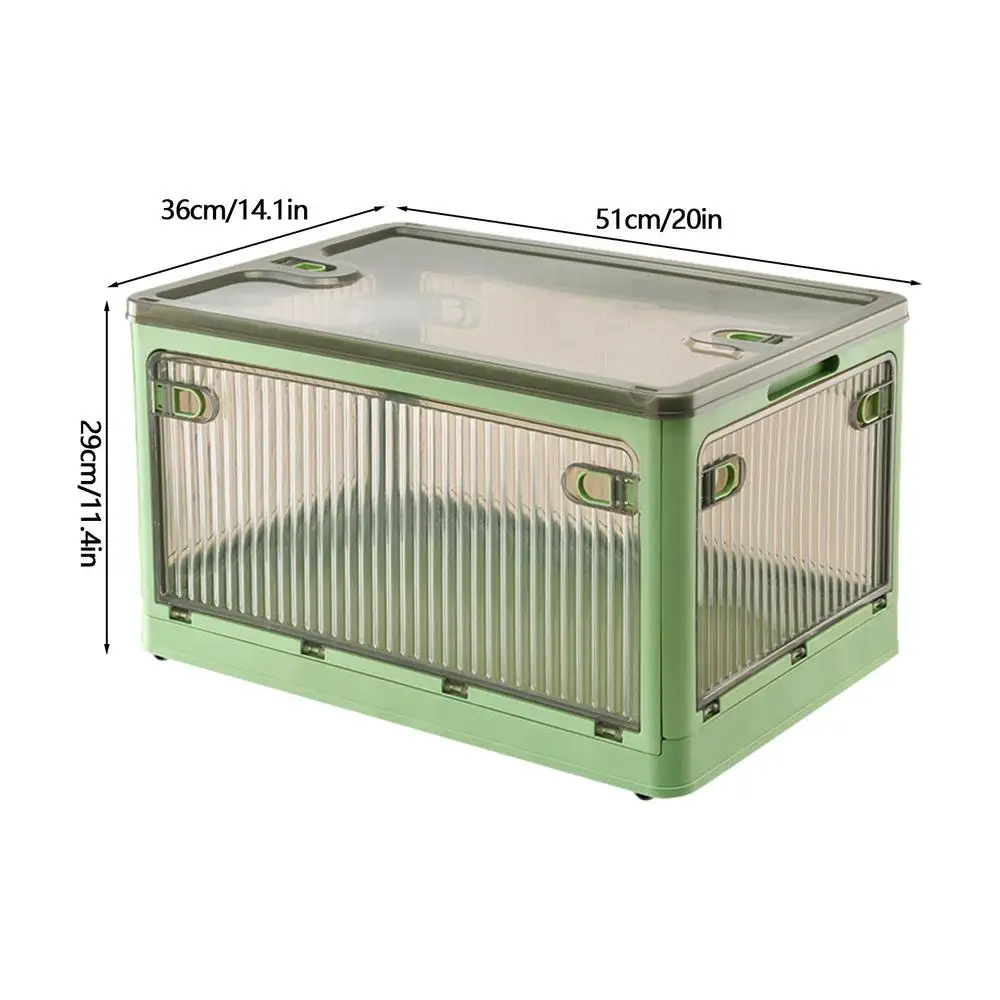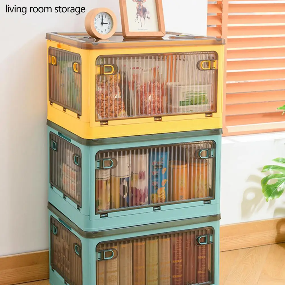 กล่องเก็บของพับได้พร้อมประตูโปร่งใสพร้อมฝาปิดและล้อที่เก็บของเล่นอเนกประสงค์กล่องใส่ของแบบใส