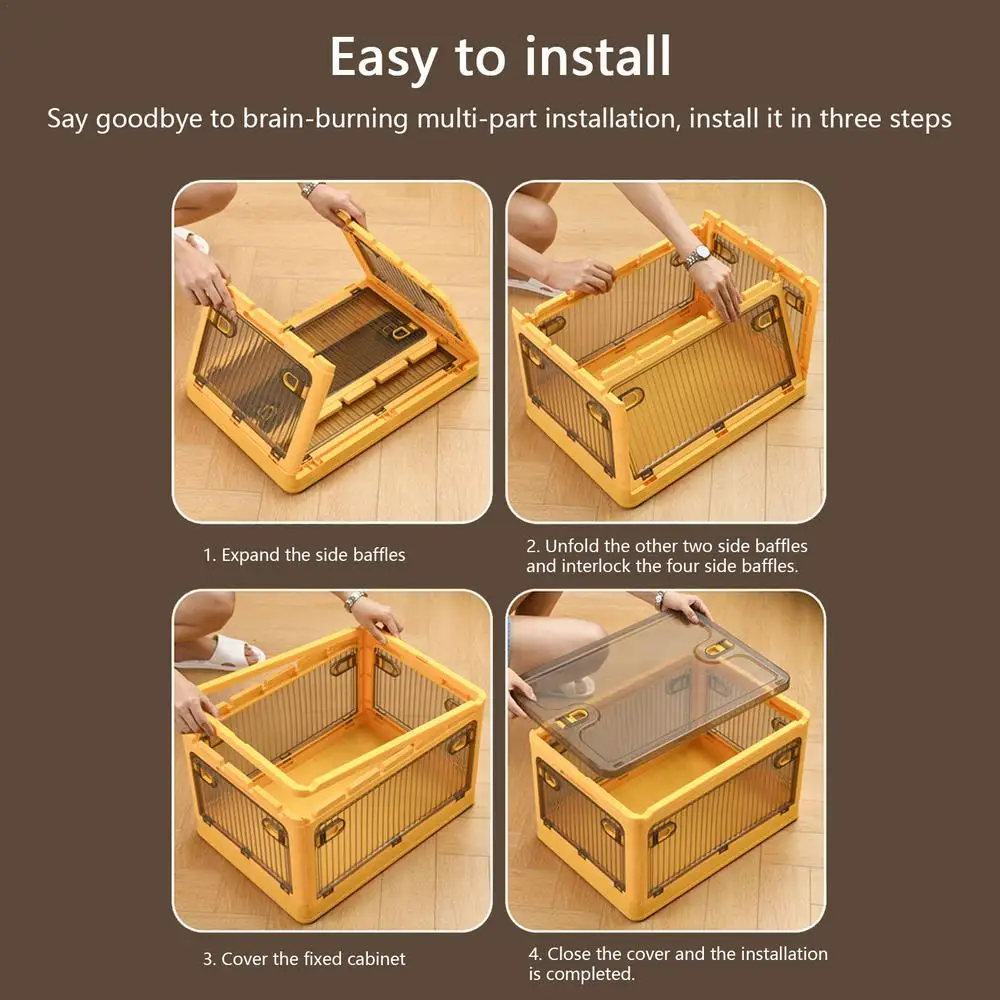 4.ประหยัดพื้นที่: ลดความยุ่งเหยิงด้วยถังเก็บของแบบพับได้พร้อมประตูใสใช้ประโยชน์จากพื้นที่ที่ไม่ได้ใช้โดยไม่ต้องใช้พื้นที่เมื่อไม่ใช้งาน