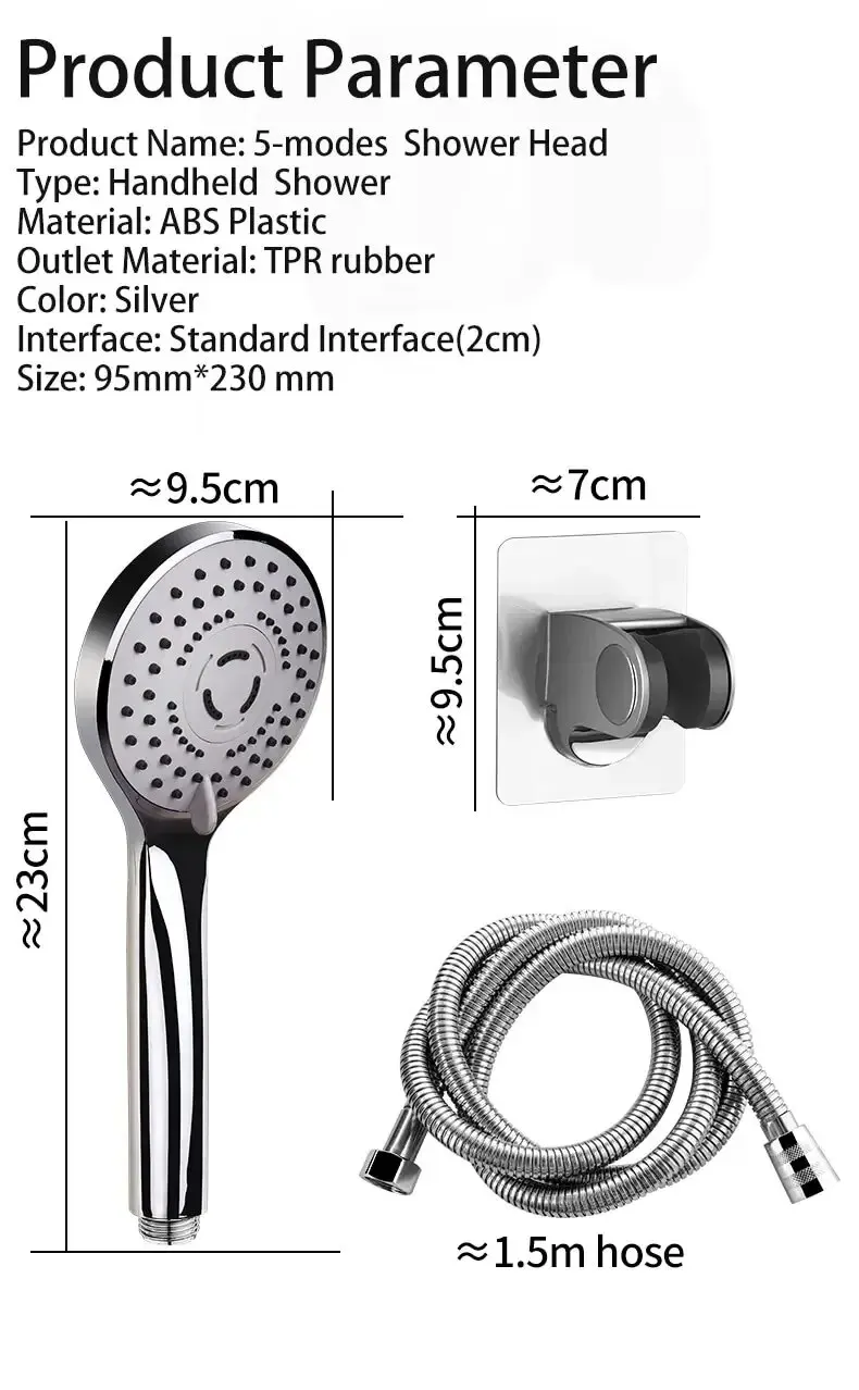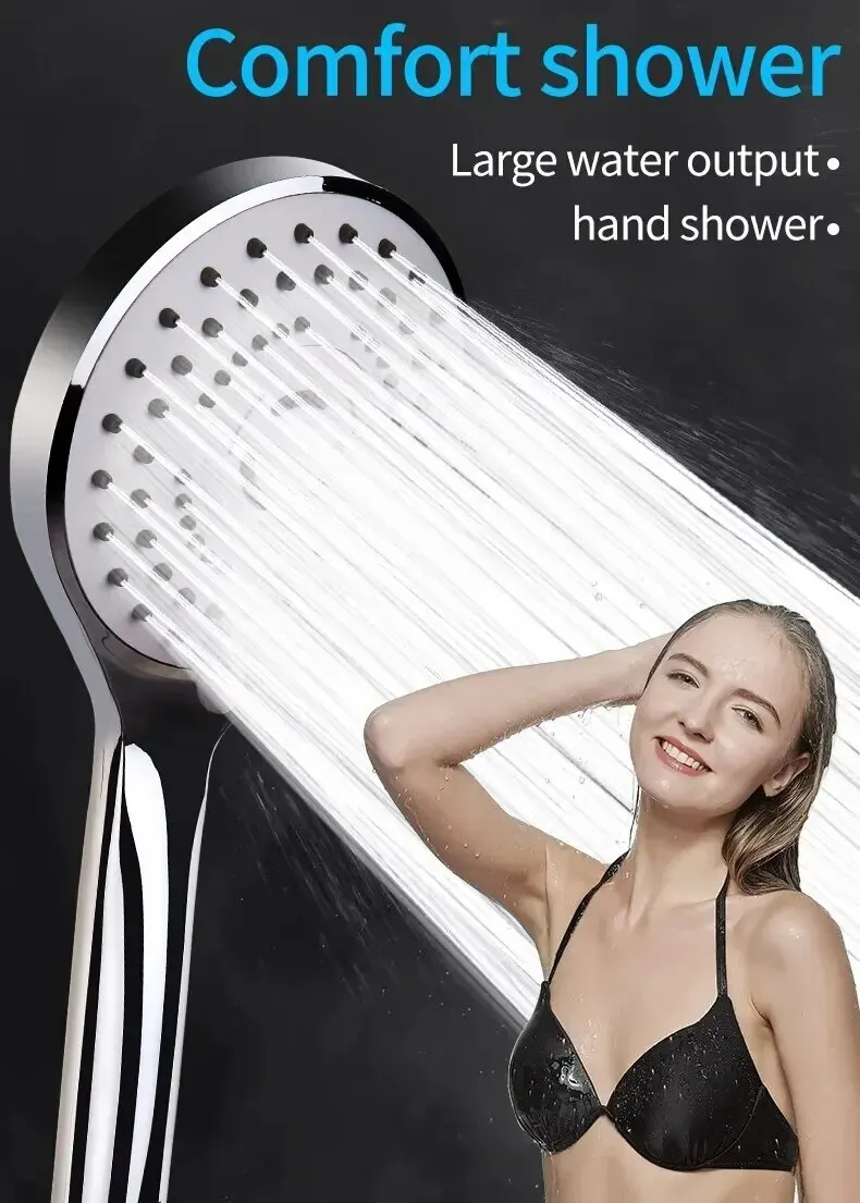 หัวฝักบัวแรงดันสูงแบบใช้มือถือ – ชุดฝักบัวประหยัดน้ํา 5 โหมดสเปรย์พร้อมระบบพอดีสากล (โหมดฝน/นวด/เจ็ท)