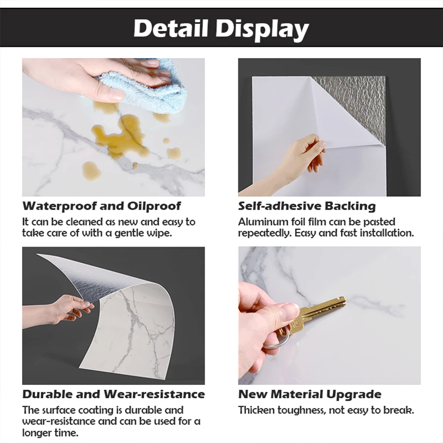 【คุณสมบัติ】สติ๊กเกอร์ติดผนังมีกาวในตัวกันน้ำและกันน้ำมัน