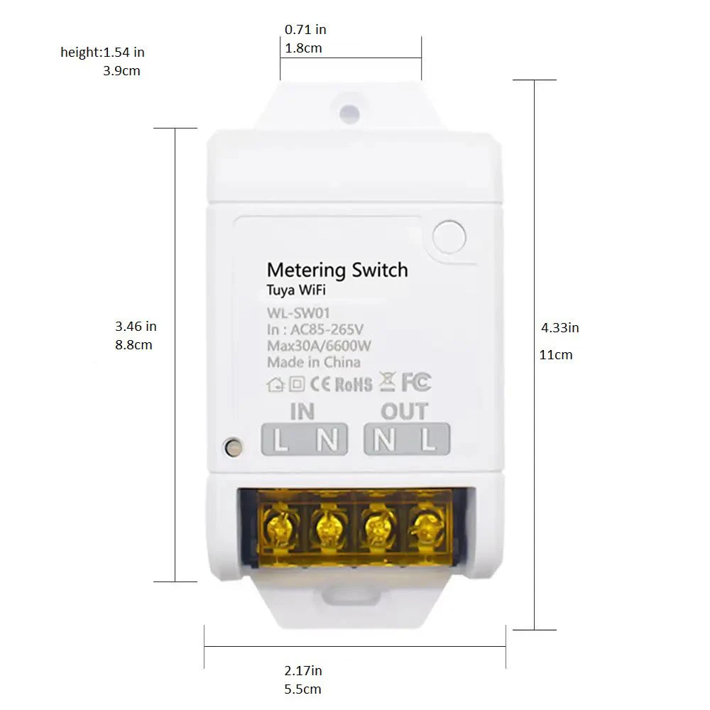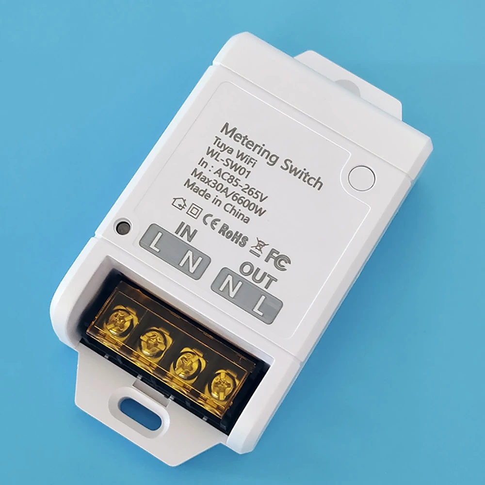 โมดูลรีเลย์ WiFi 30A 85-265V สวิตช์อัจฉริยะพร้อมฟังก์ชันตรวจสอบพลังงาน ตัวควบคุมระบบบ้านอัตโนมัติ รองรับการควบคุมผ่าน Tuya ใช้งานร่วมกับ Alexa และ Google Home