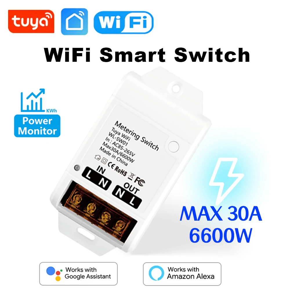 WiFi 30A โมดูลรีเลย์ 85-265V สมาร์ทสวิทช์ Power Monitor Home Automation Controller Tuya ควบคุมรองรับ Alexa Google Home
