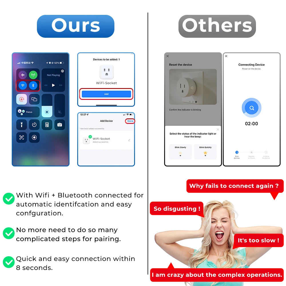 【 การควบคุมระยะไกลของแอป 】แอป Tuya/Smart Life ช่วยให้คุณควบคุมอุปกรณ์ได้ทุกที่ด้วยการแตะเพียงครั้งเดียวผ่านสมาร์ทโฟน iOS และ Android โดยไม่มีข้อจำกัดด้านระยะทาง