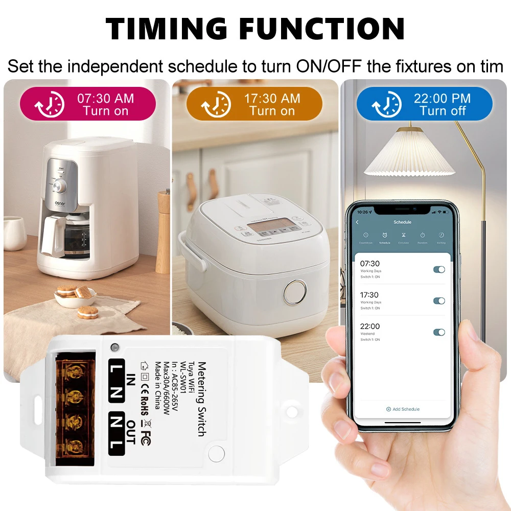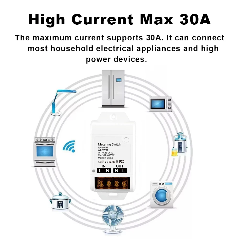 【 กำลังสูง 】สวิตช์อัจฉริยะ Tuya สามารถทนกระแสสูงสุด 30A ตอบสนองความต้องการของเครื่องใช้ไฟฟ้ากำลังสูงของครอบครัว โคมไฟ ประตูไฟฟ้า ปั๊มน้ำ มอเตอร์ การควบคุมอุตสาหกรรม และสาขาอื่น ๆ ได้อย่างง่ายดาย