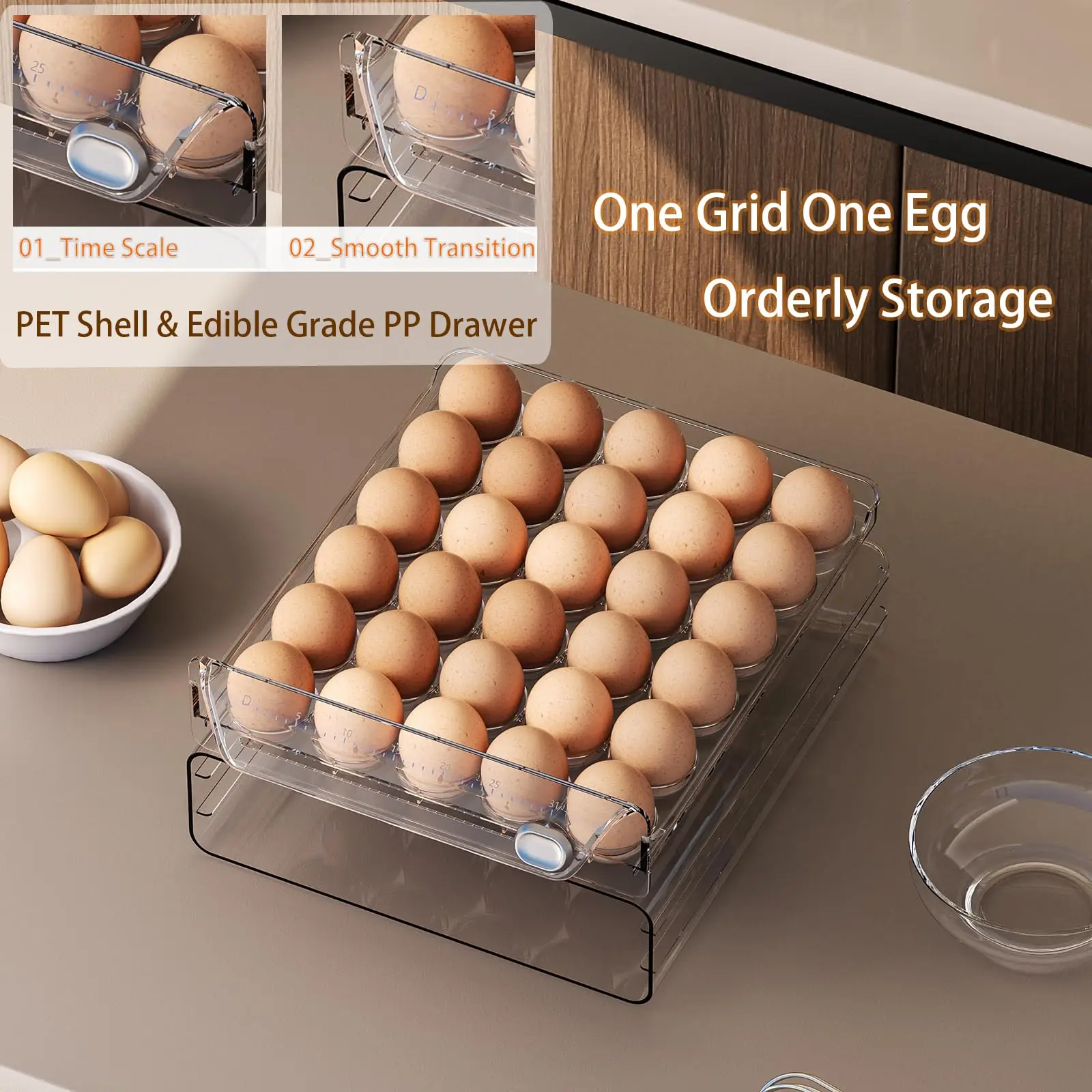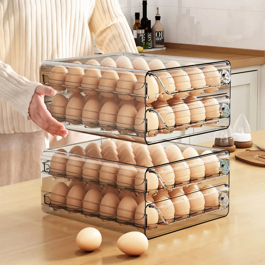 ที่ใส่ไข่สำหรับลิ้นชักตู้เย็นพร้อมสเกลบอกเวลา กล่องเก็บไข่สดใสสำหรับแช่แข็ง ถาดใส่ไข่ขนาดใหญ่