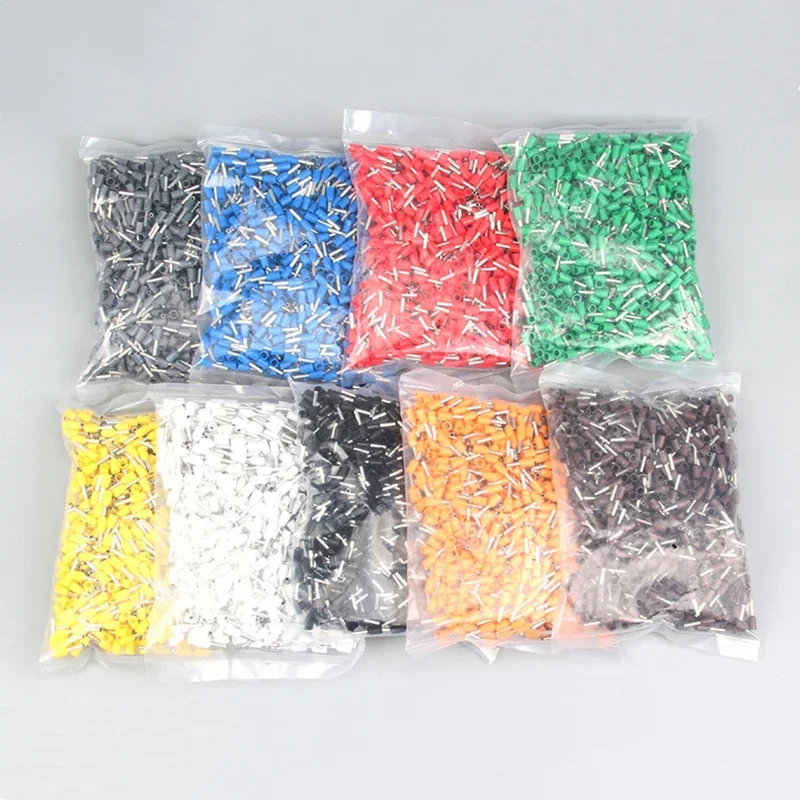 100PCS สายไฟฟ้าตัวเชื่อมต่อ Wire Terminal Ferrules ปลายสายไฟฉนวน CRIMP TERMINAL BLOCK E0508 E7508 E1008 E1508 E2508