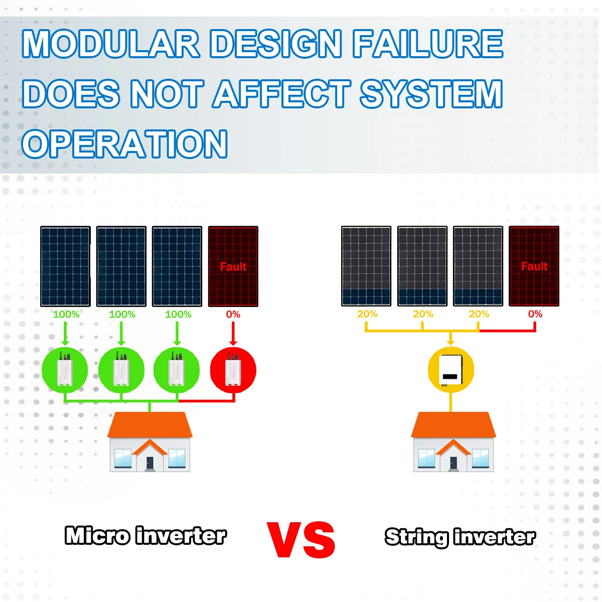 อุปกรณ์นี้เป็นไมโครอินเวอร์เตอร์แบบออนกริดและต้องเชื่อมต่อกับกริดไฟฟ้าอย่างถูกต้องเพื่อให้ทำงานได้อย่างถูกต้อง เมื่อกริดไฟฟ้าหยุดทำงานมันก็จะหยุดสร้าง