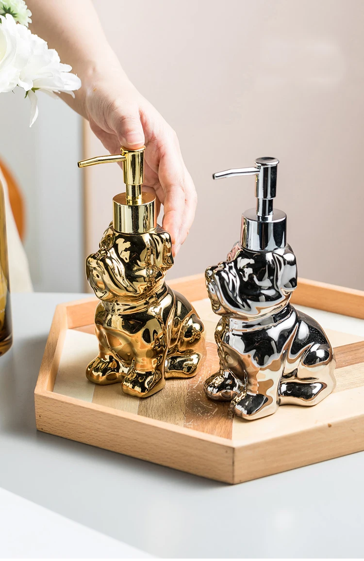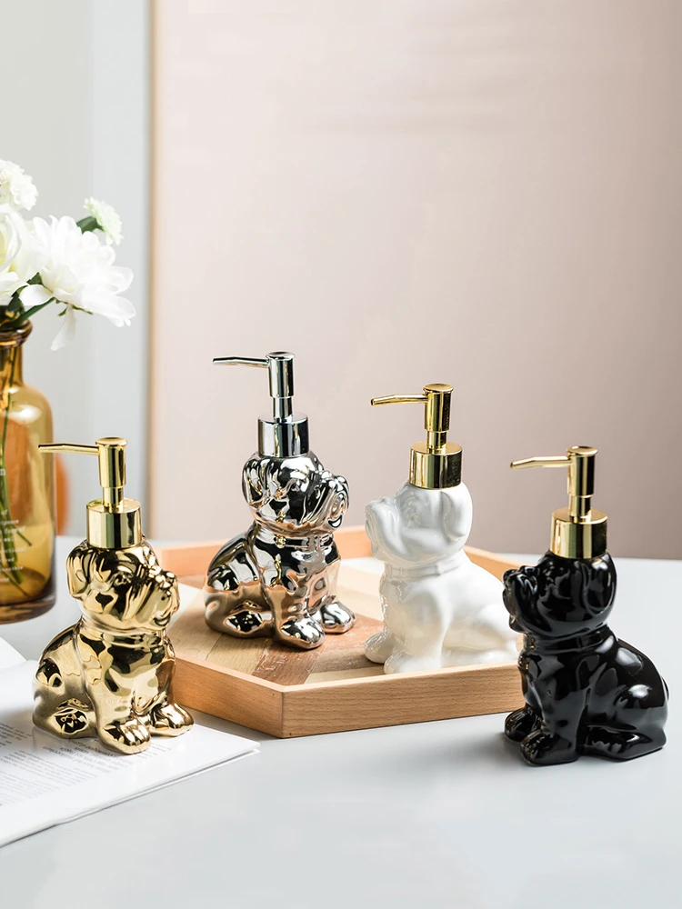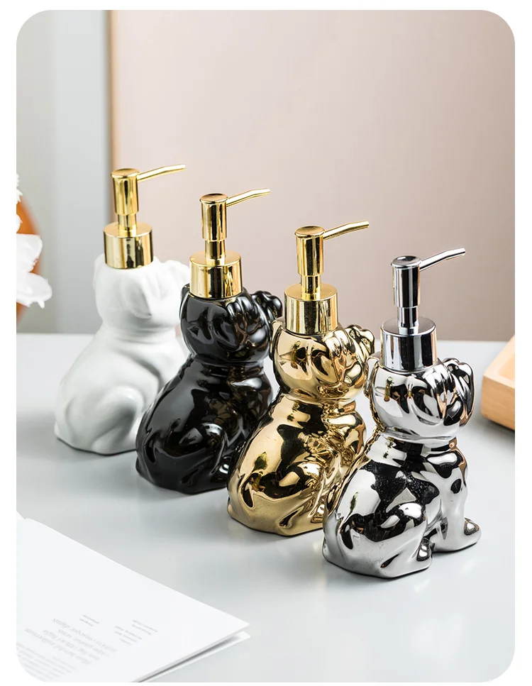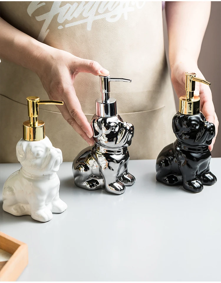 เครื่องจ่ายสบู่เซรามิครูปสุนัขแบบพกพา Hand Sanitizer ขวดโลชั่นบ้านห้องน้ําแชมพูขวดเจลอาบน้ําเครื่องใช้ในบ้าน