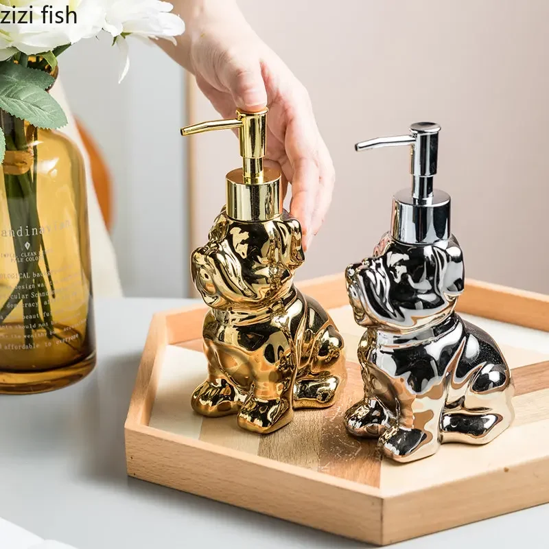 เครื่องจ่ายสบู่เซรามิครูปสุนัขแบบพกพา Hand Sanitizer ขวดโลชั่นบ้านห้องน้ําแชมพูขวดเจลอาบน้ําเครื่องใช้ในบ้าน