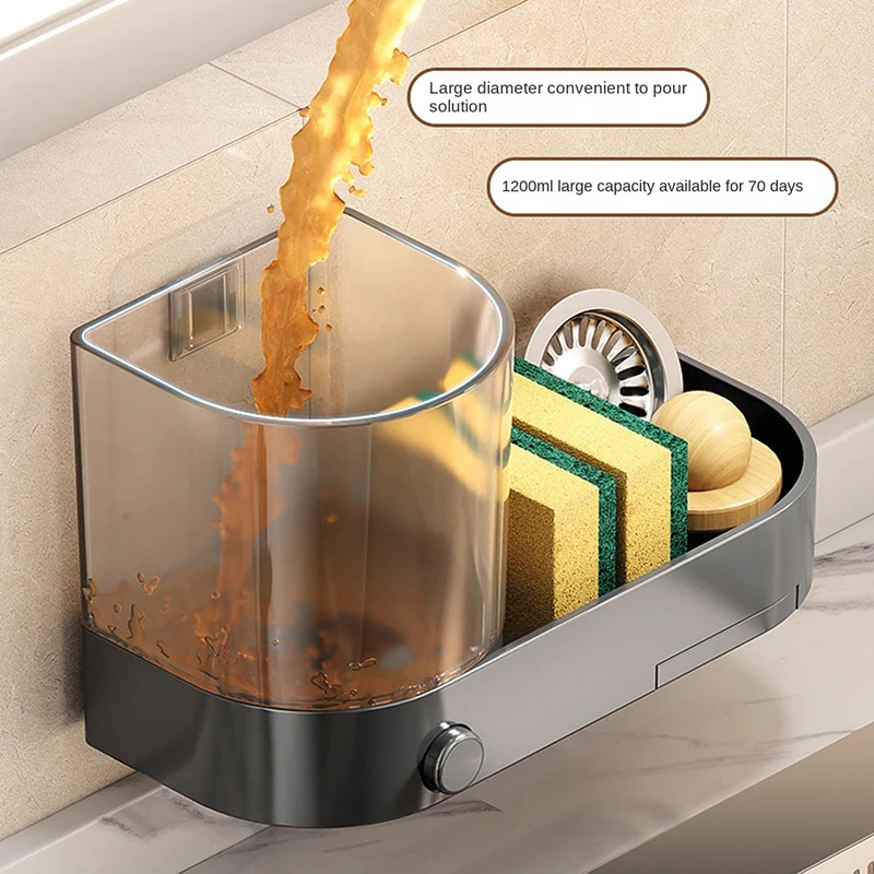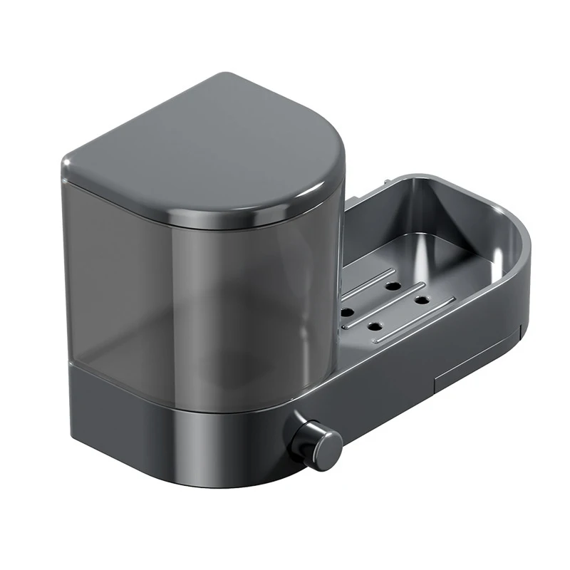 เครื่องจ่ายสบู่ติดผนังพร้อมที่วางฟองน้ําถาดระบายน้ํามือกดล้างจานภาชนะของเหลวกันน้ํา