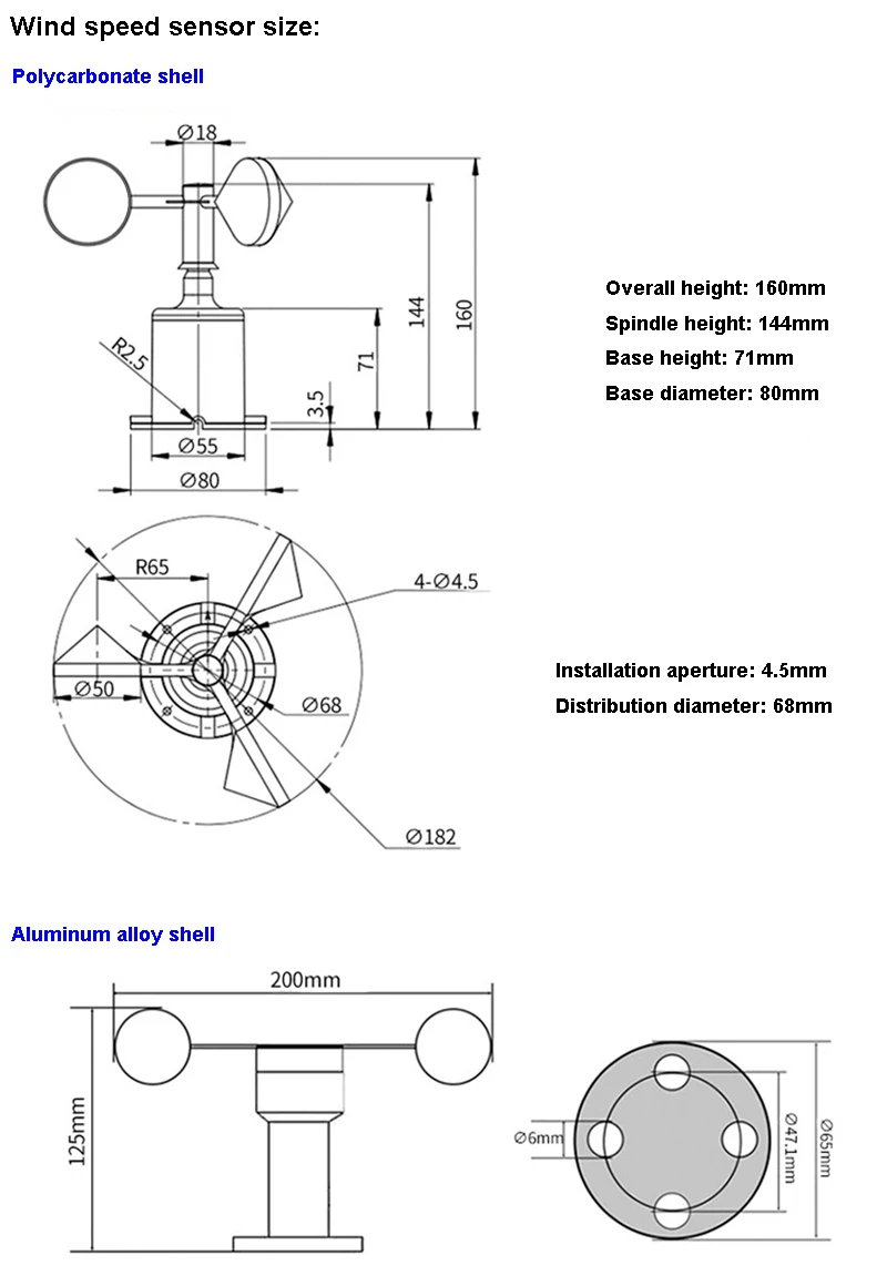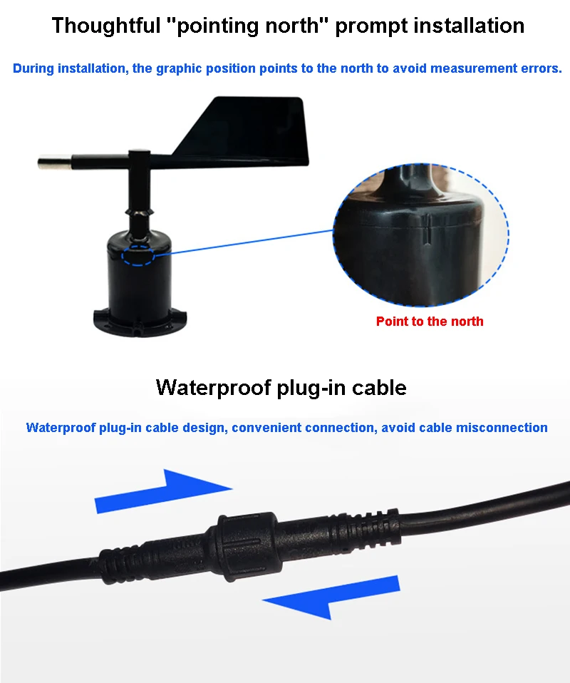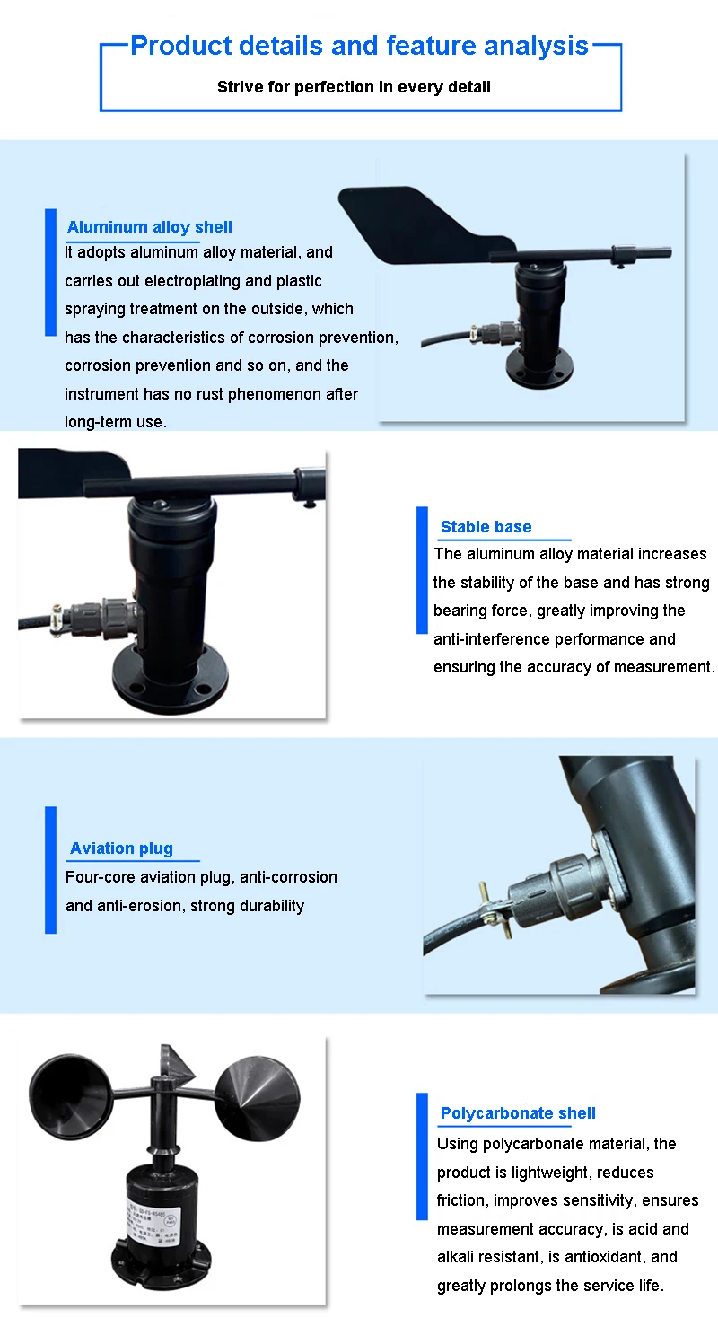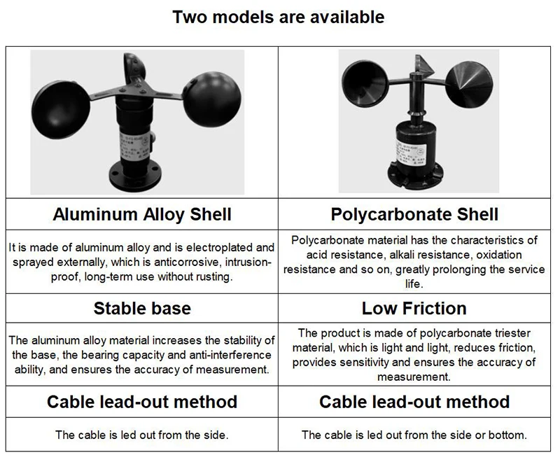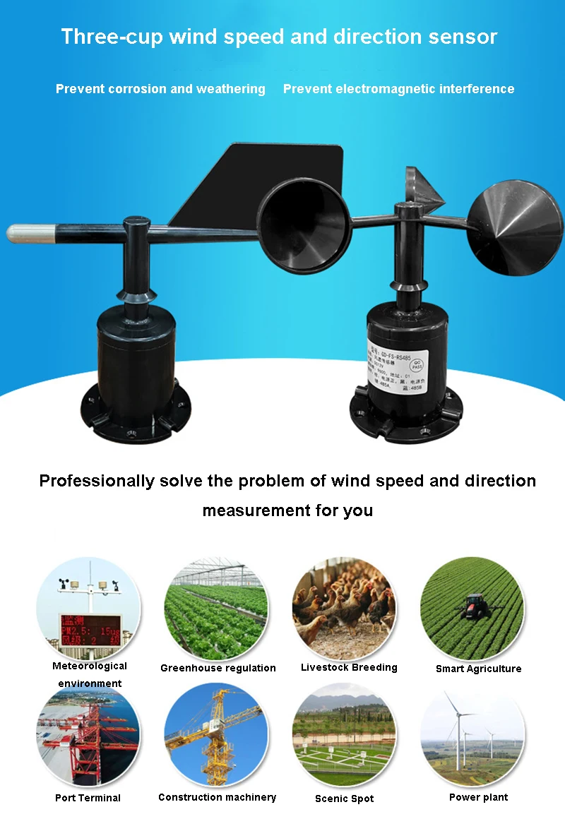 เครื่องมือวัดความเร็วลมและทิศทางความเร็วลมความแม่นยําสูงอลูมิเนียมอัลลอยด์สามถ้วยการตรวจสอบภาพเอาต์พุต RS485
