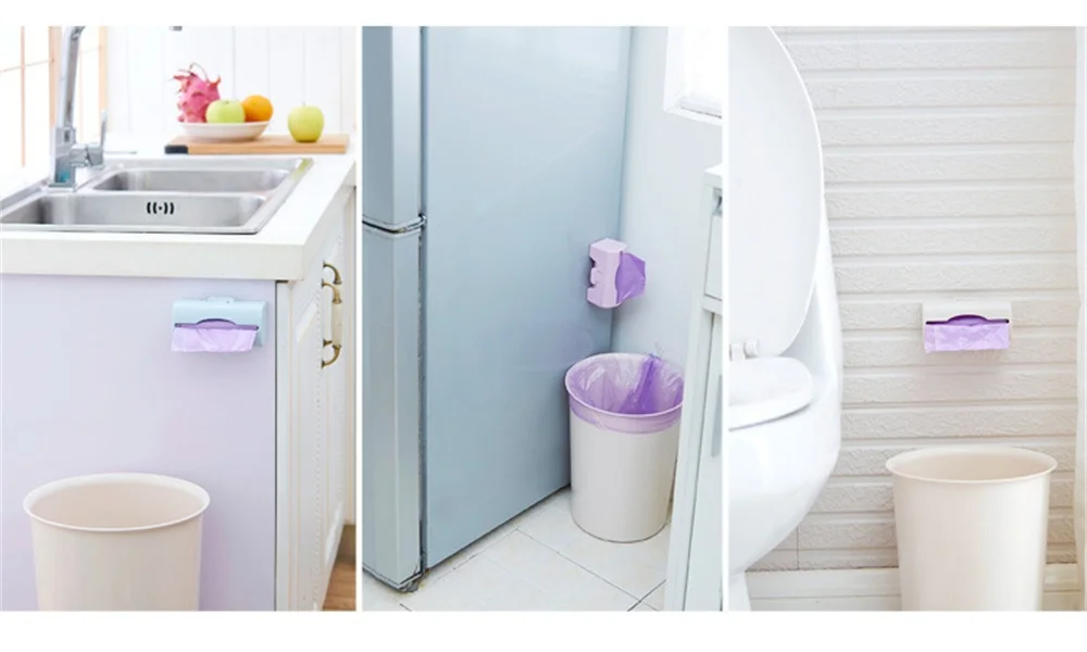 ถังขยะผู้ถือถุงขยะห้องครัวDispenser Organizerทนทานถุงขยะกล่องเก็บถุงพลาสติกคอนเทนเนอร์ติดผนัง