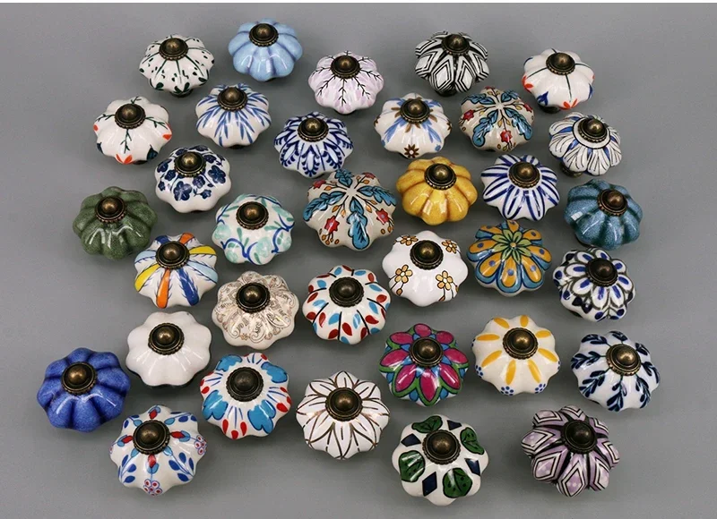 ดอกไม้เซรามิค Retro KNOB ห้องนอนห้องครัวตู้ลิ้นชัก Handle