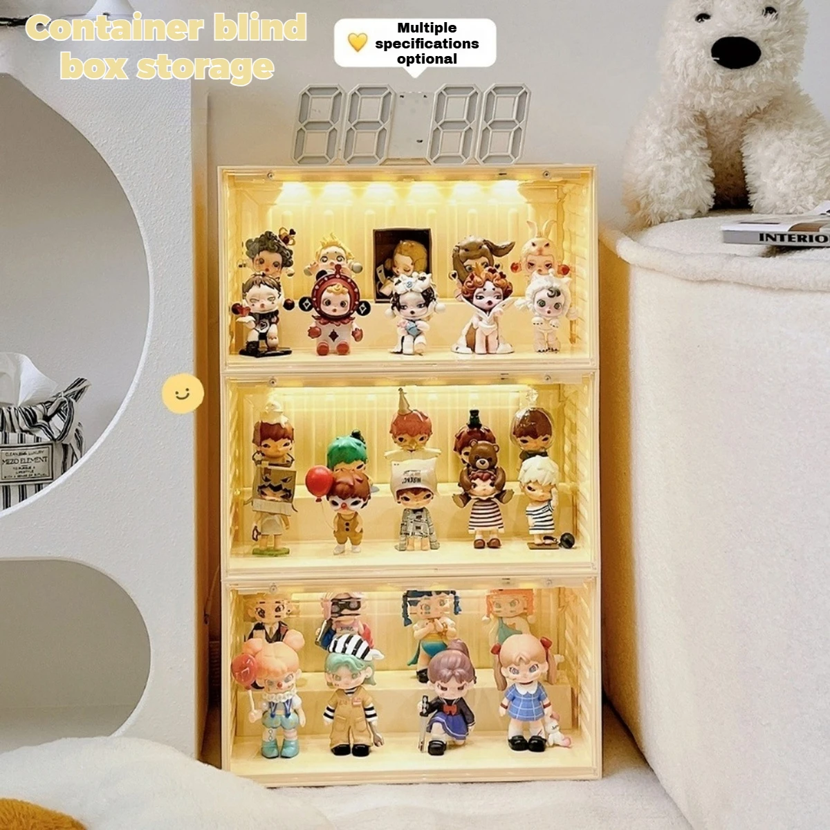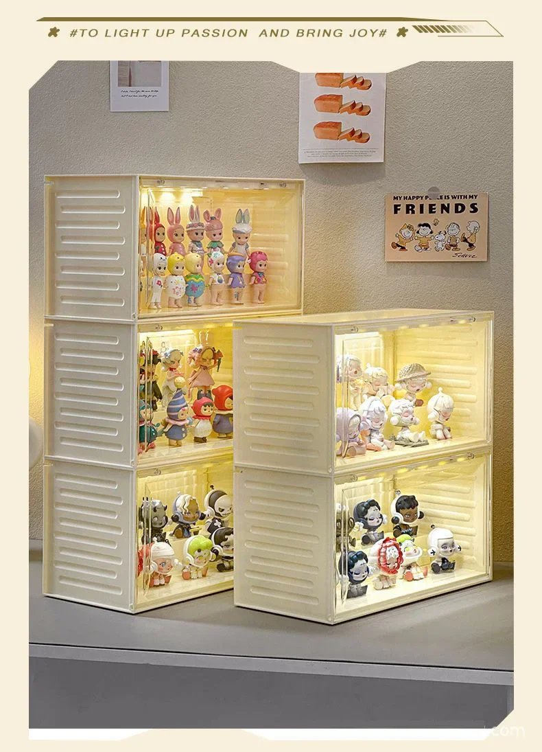 ตู้โชว์ฟิกเกอร์พร้อมไฟเซ็นเซอร์ แบบซ้อนได้ สำหรับของสะสม ตู้โชว์ที่ทนทานสำหรับฟิกเกอร์ขนาดเล็ก