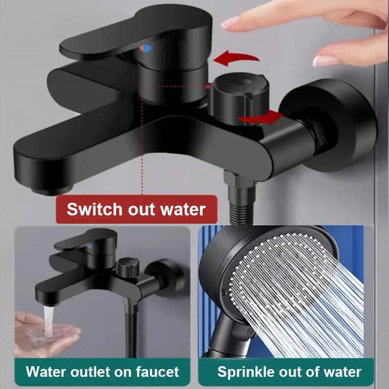 ก๊อกน้ำฝักบัวอ่างอาบน้ำสีดำติดกับผนังก๊อกผสมฝักบัวก๊อกน้ำร้อนเย็นก๊อกน้ำฝักบัวบาริเน็ต