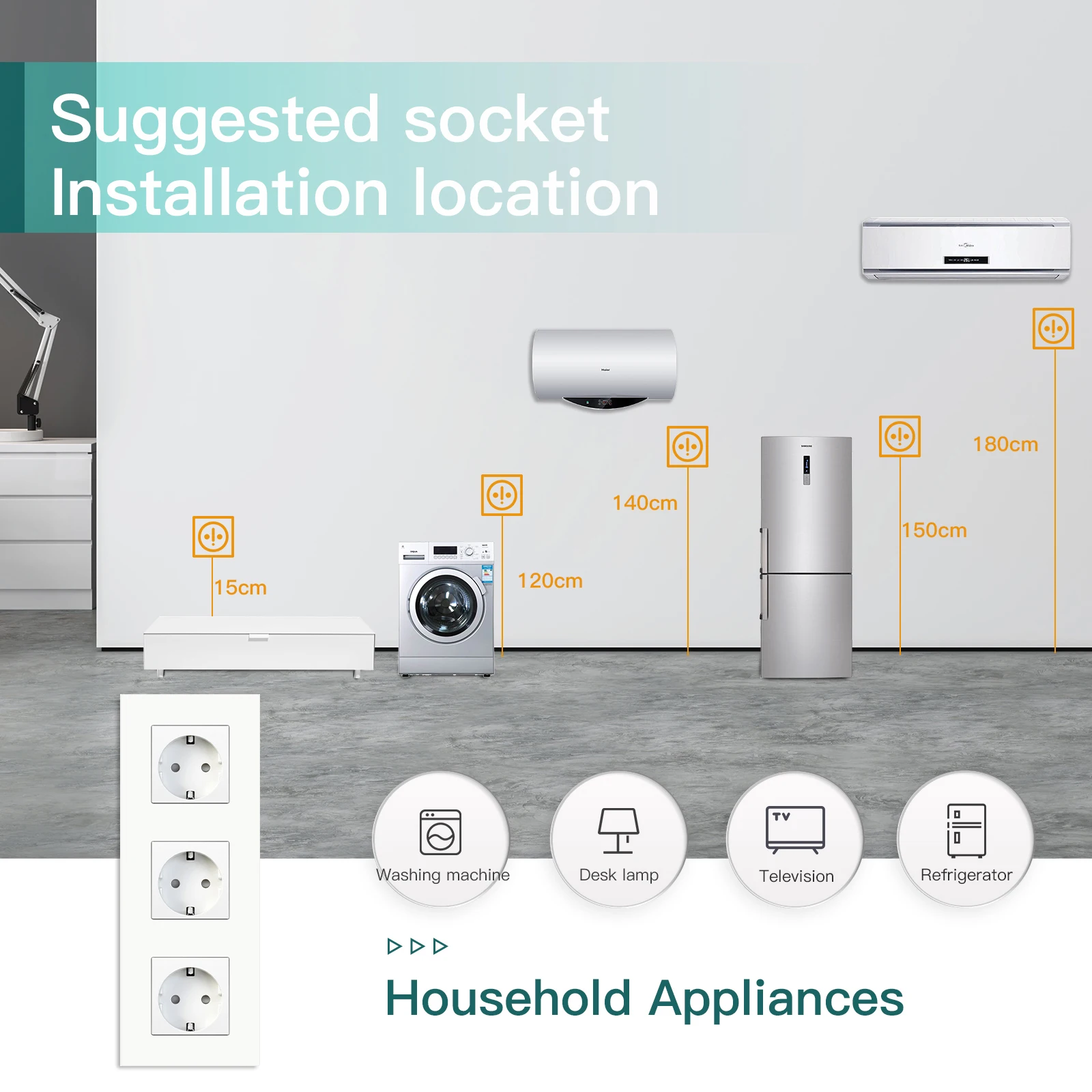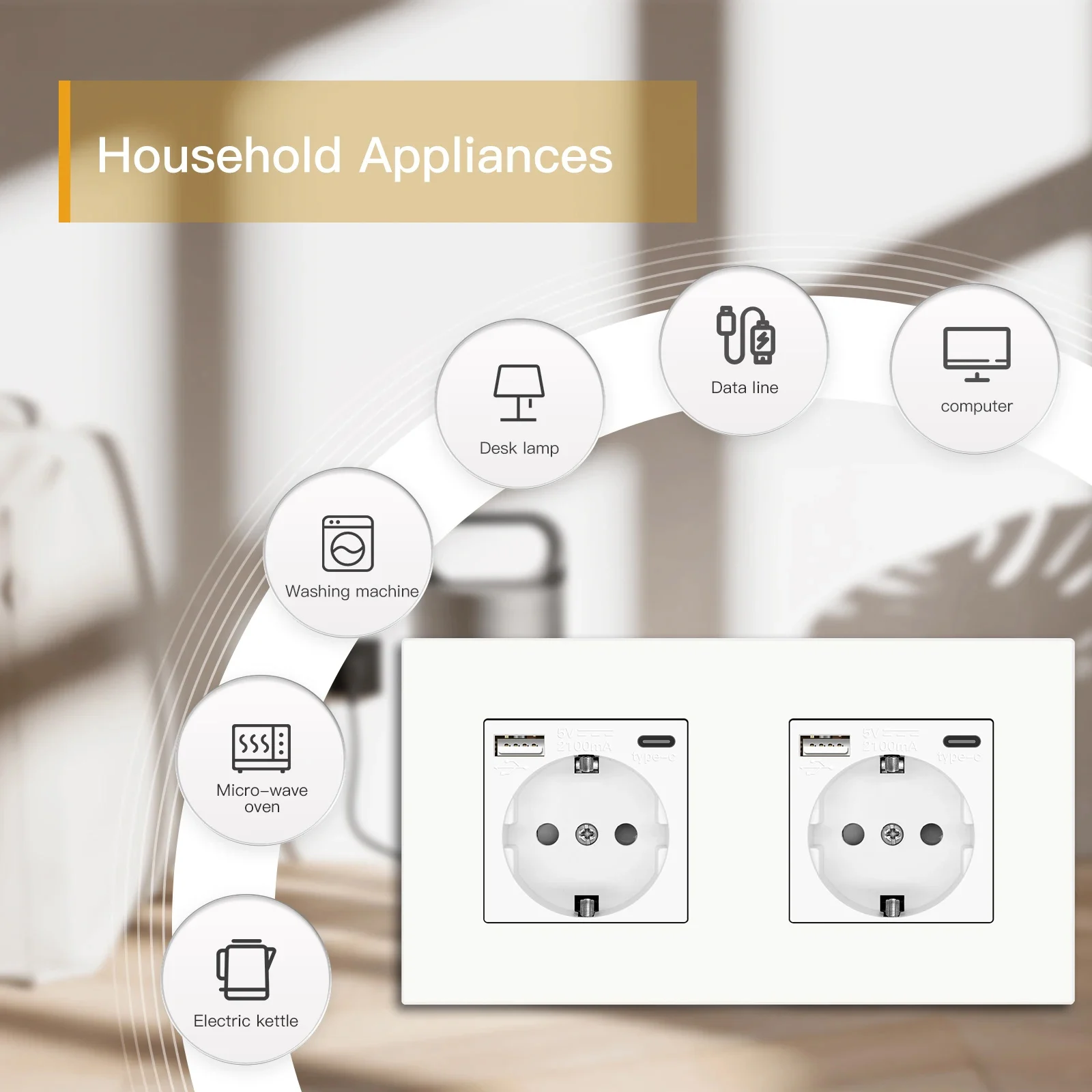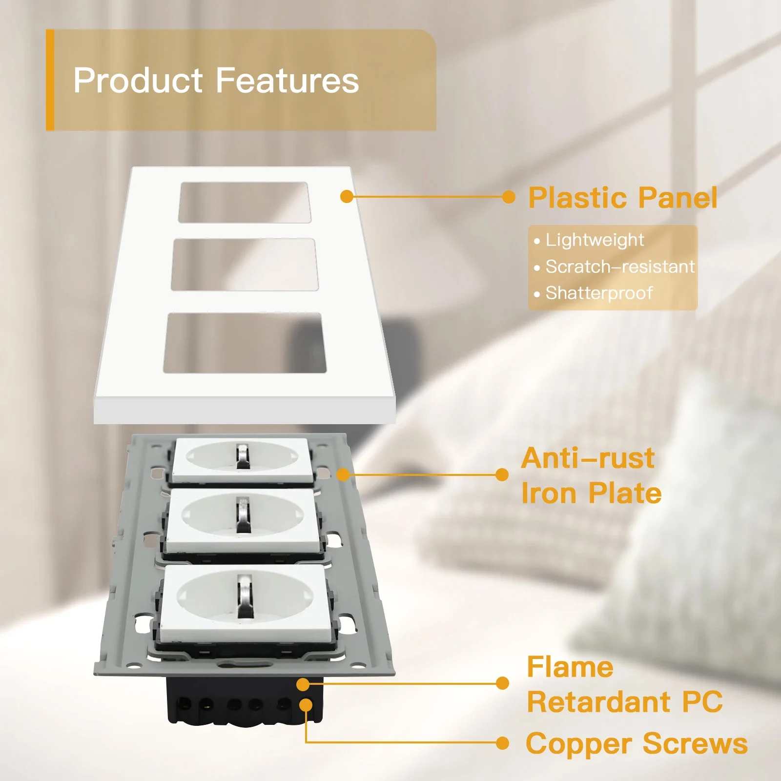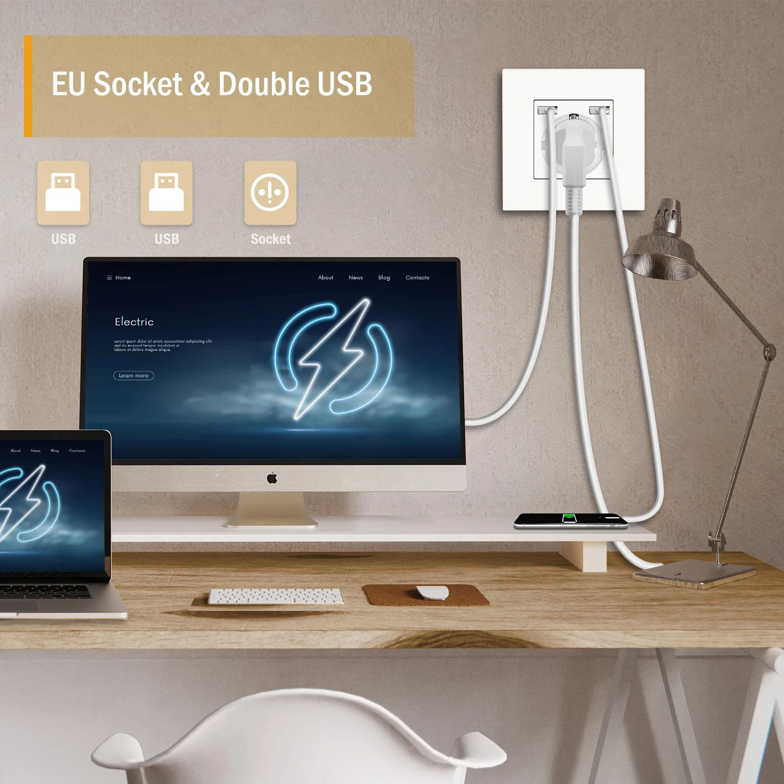 BSEED EU ซ็อกเก็ตผนัง Type-C USB Power Sockets คู่ซ็อกเก็ตไฟฟ้า Triple Outlets กรอบพลาสติกเยอรมนีซ็อกเก็ต Dual USB
