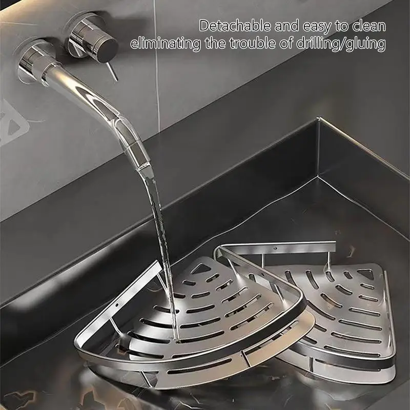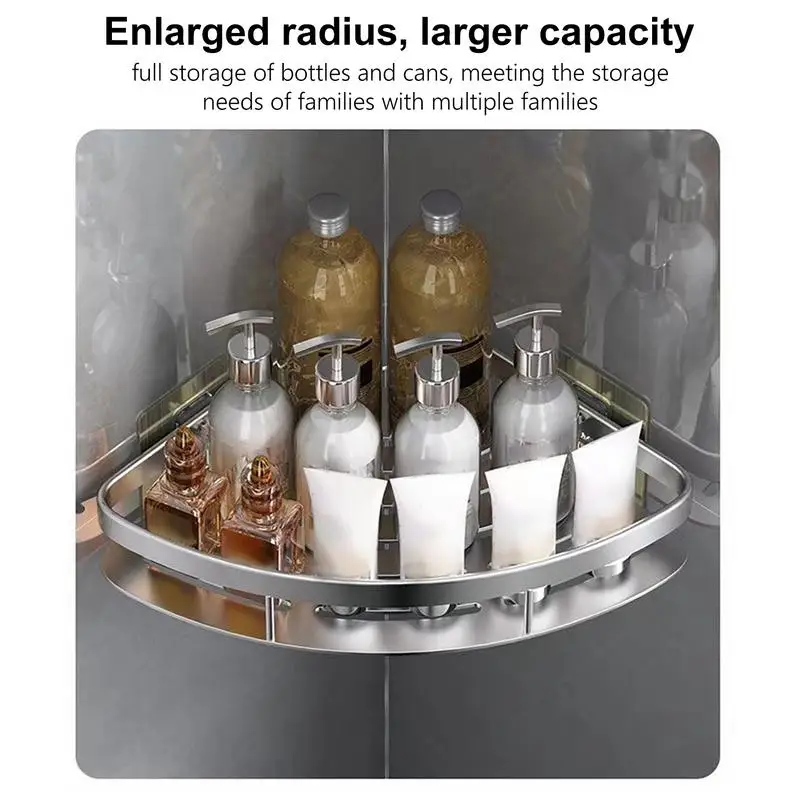 ห้องน้ํา WC ชั้นวางของสามเหลี่ยมห้องอาบน้ําฝักบัว Rack แชมพูผนังเจาะฟรี Sliver อลูมิเนียมห้องน้ําชั้นวางมุม