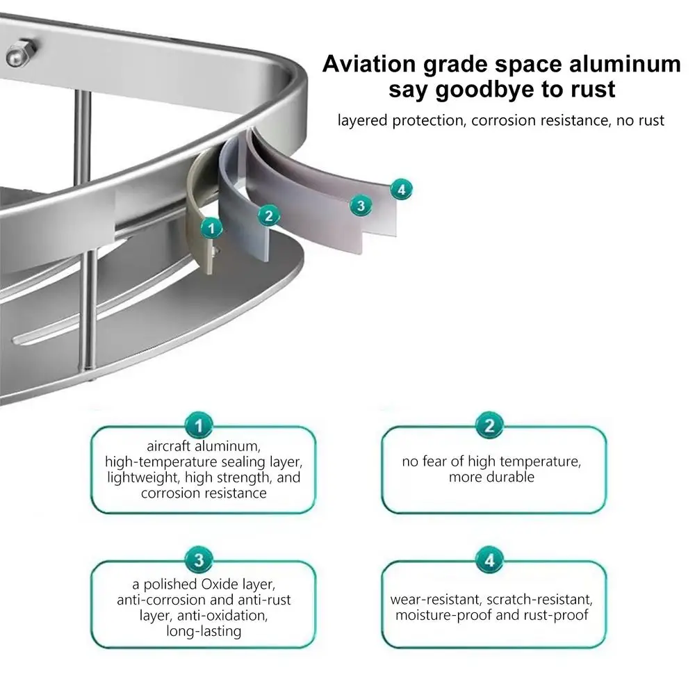 4.อุปกรณ์จัดระเบียบห้องน้ําที่ทนทาน: ด้วยความแข็งแรงและความทนทานที่น่าทึ่ง ชั้นวางของติดผนังสามเหลี่ยมนี้ผลิตจากอลูมิเนียมการบิน ซึ่งไม่เพียงแต่ทนต่อการซีดจางและสนิมเท่านั้น แต่ยังรับน้ําหนักได้มาก ทําให้เป็นอุปกรณ์ห้องน้ําที่เชื่อถือได้และมีสไตล์ซึ่งสามารถใส่ได้พอดีทุกมุม