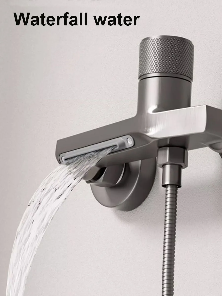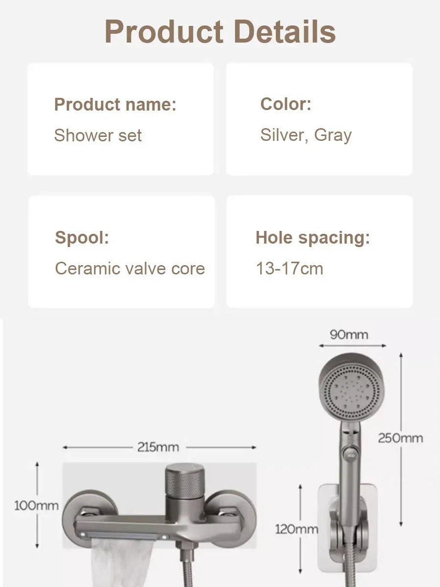 ระบบฝักบัวอาบน้ำแบบฝังฝ้าเพดาน AITANA สีเทา Gun Grey ทองเหลือง ดีไซน์มินิมอล พร้อมก๊อกผสมน้ำร้อนน้ำเย็นแบบฝัง 2 ฟังก์ชั่น